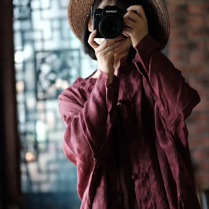 衣都精品- 2023新款數碼印花寬鬆對襟文藝上衣