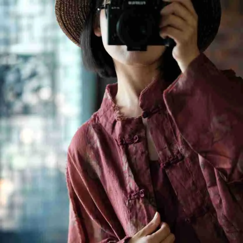 衣都精品- 2023新款數碼印花寬鬆對襟文藝上衣