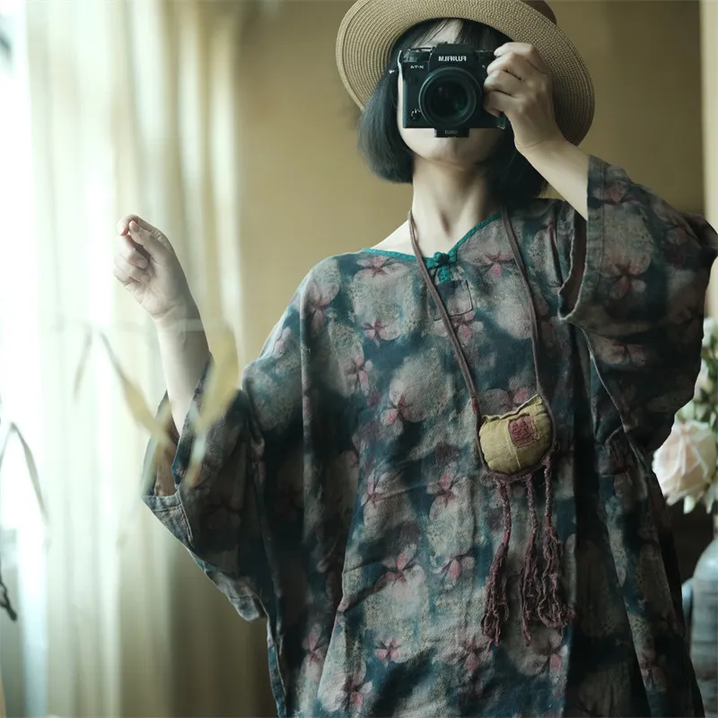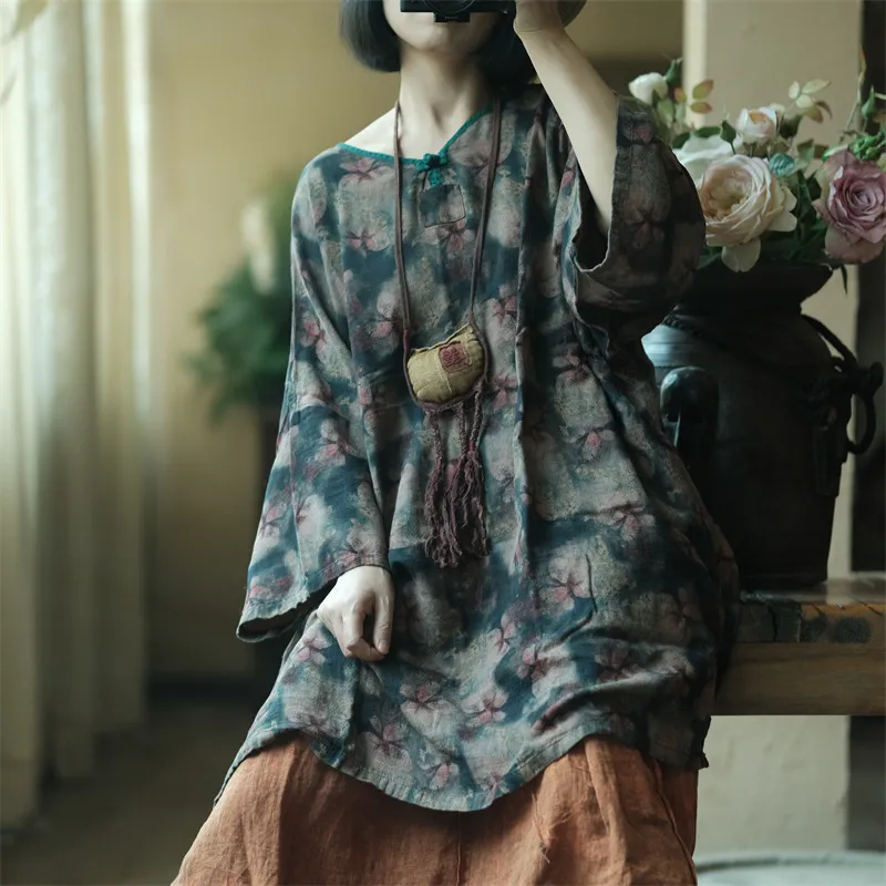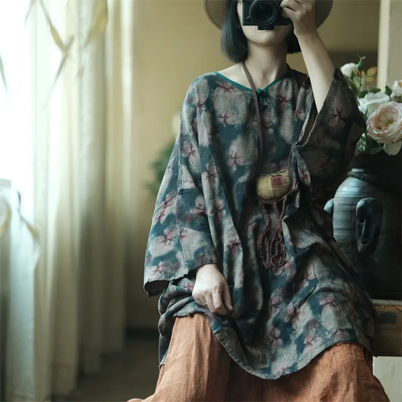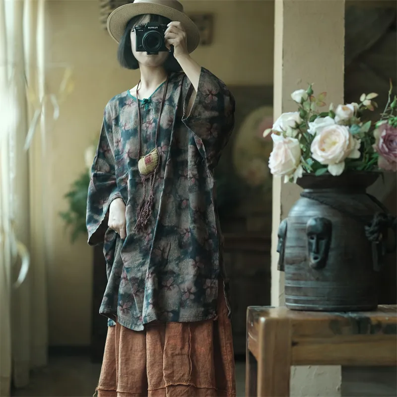 衣都精品- 2023新款數碼印花寬鬆對襟文藝上衣