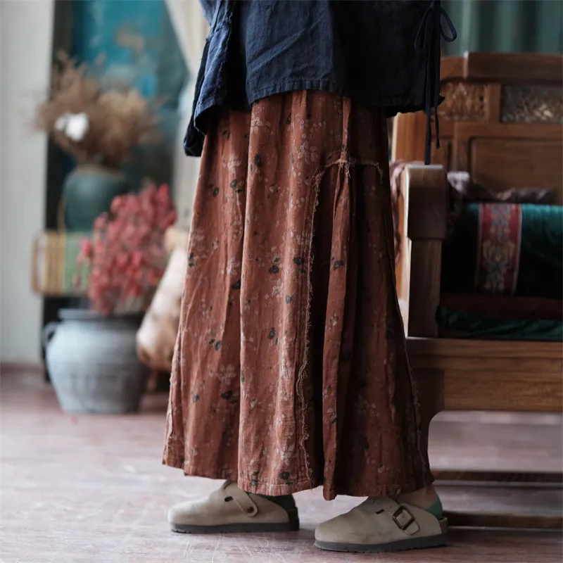 衣都精品- 2023新款毛邊拼接鬆緊腰雙層棉紗半身裙