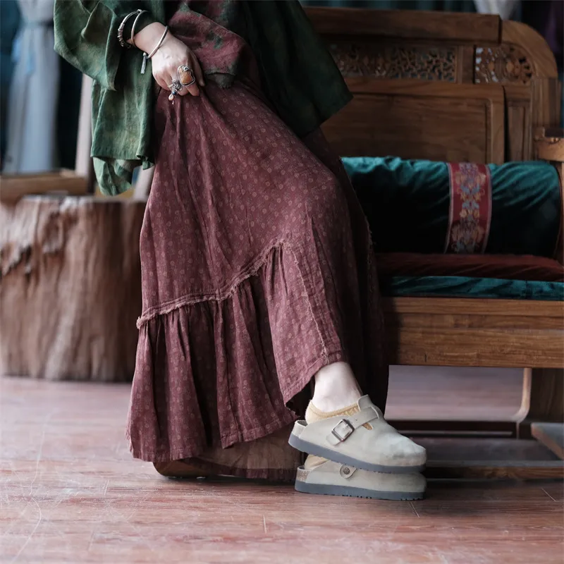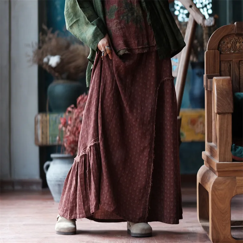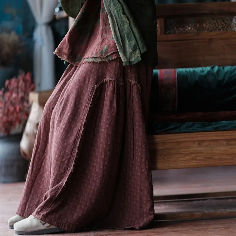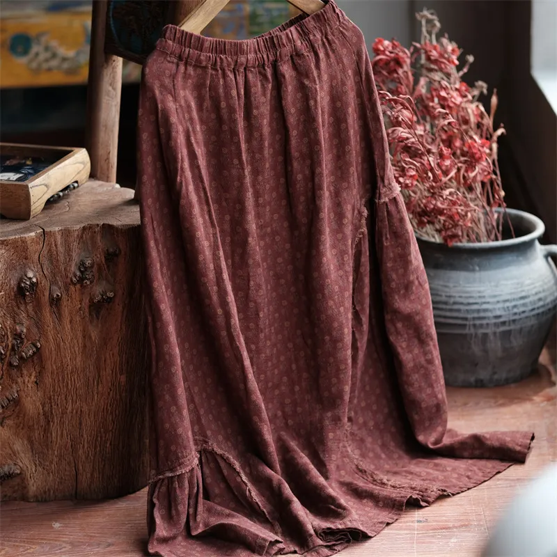 衣都精品- 2023新款毛邊拼接鬆緊腰雙層棉紗半身裙