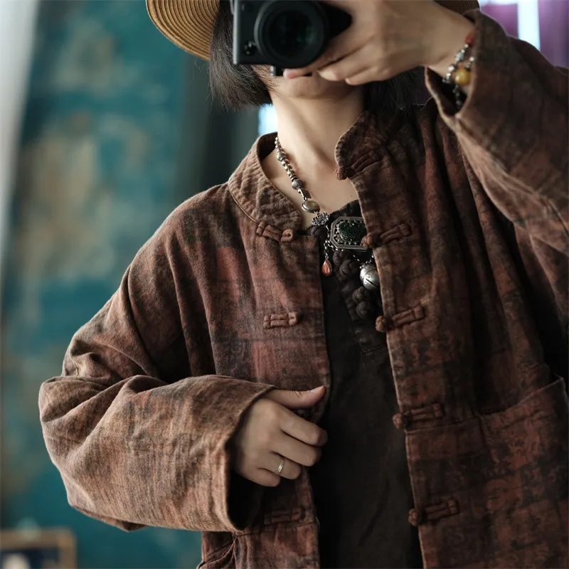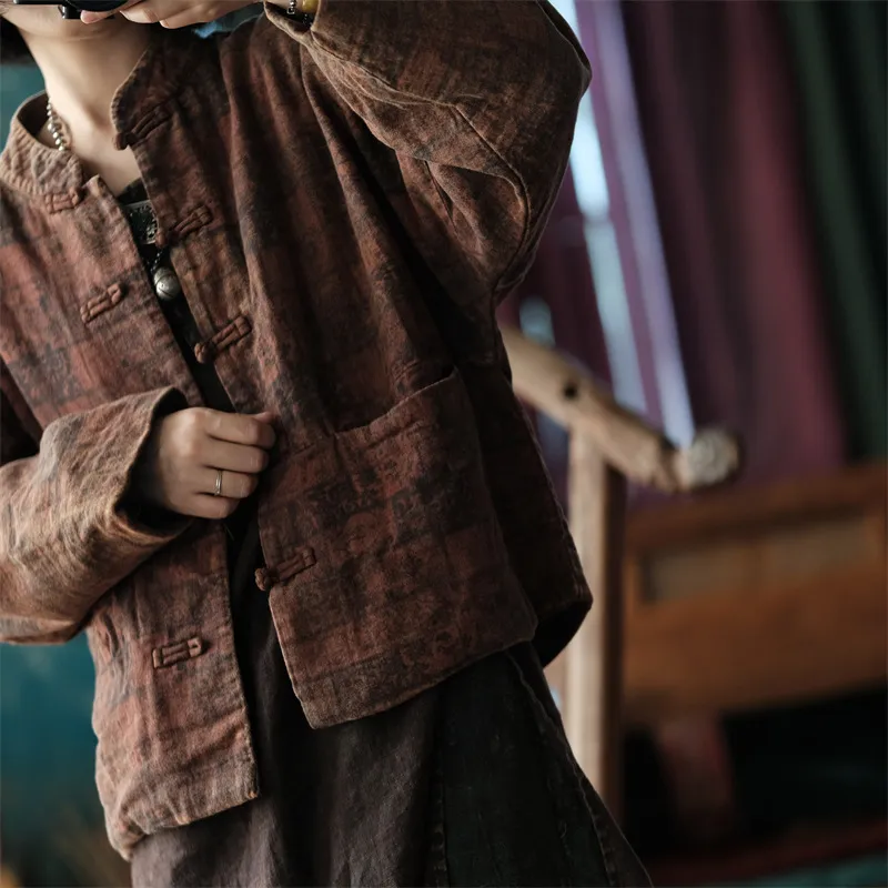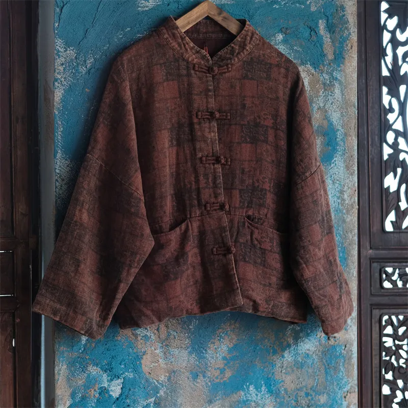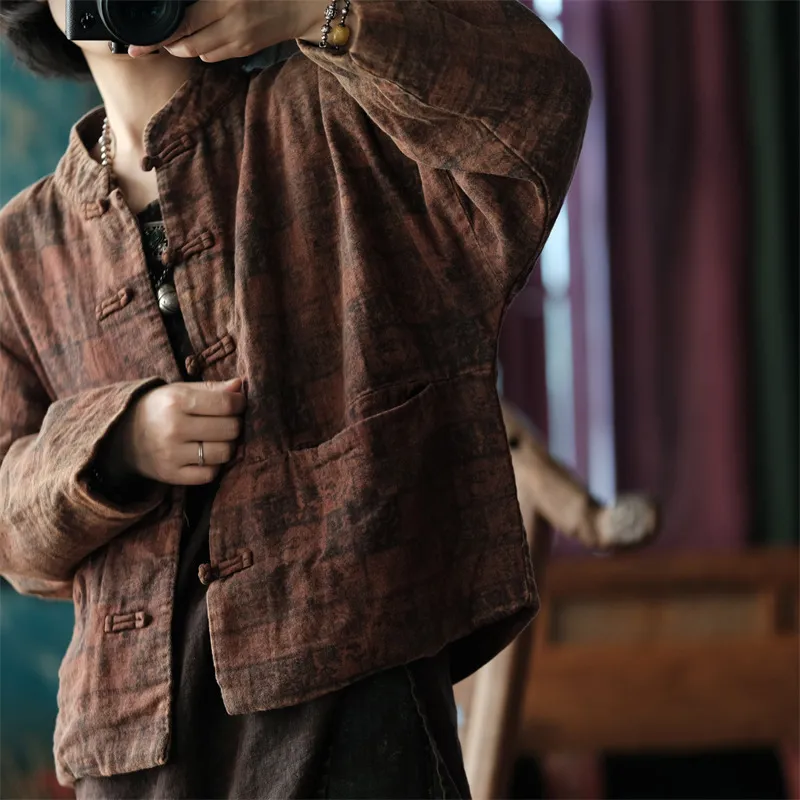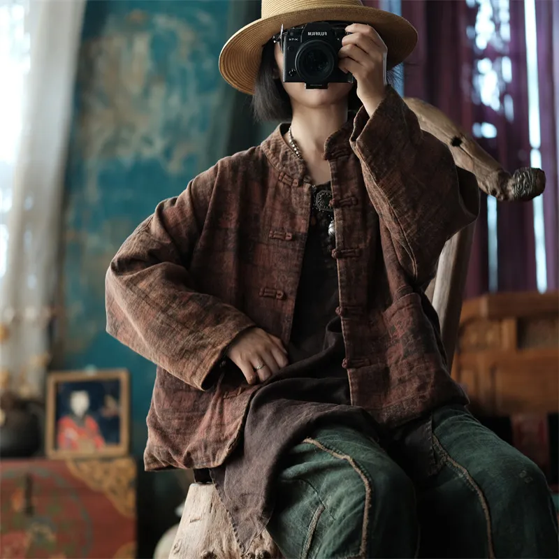 衣都精品- 2023新款復古雙層純棉盤扣對襟上衣