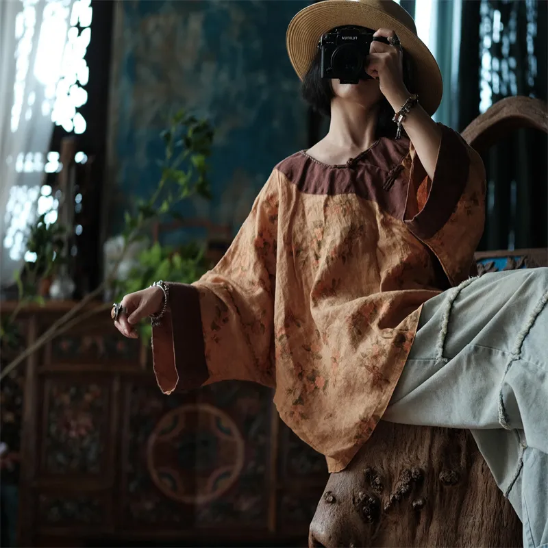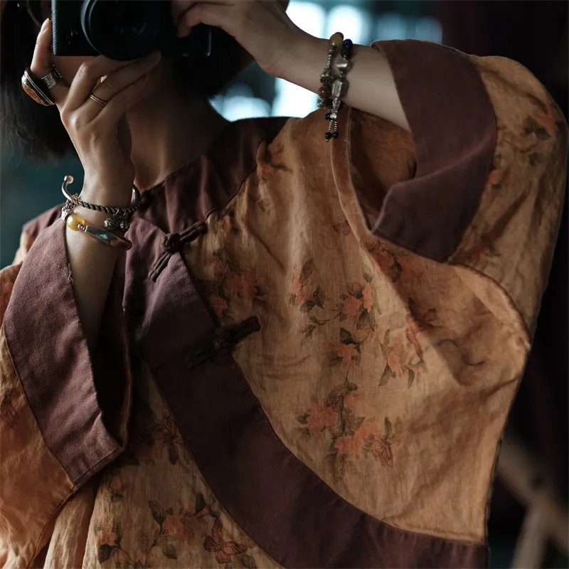 衣都精品- 2023新款仿香雲紗印花盤扣短袍上衣