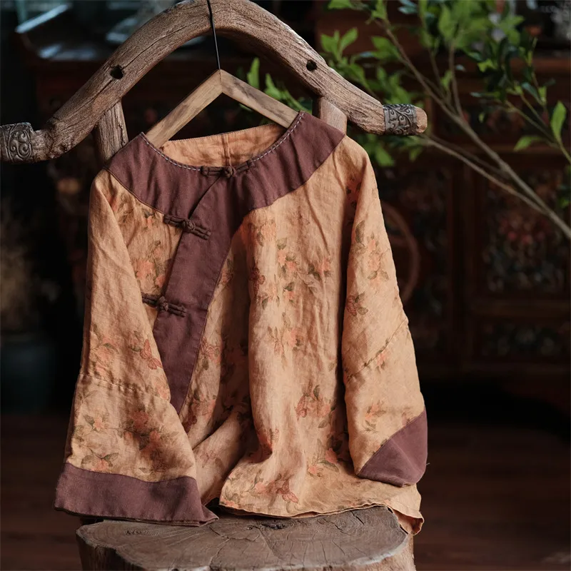 衣都精品- 2023新款復古雙層純棉盤扣對襟上衣