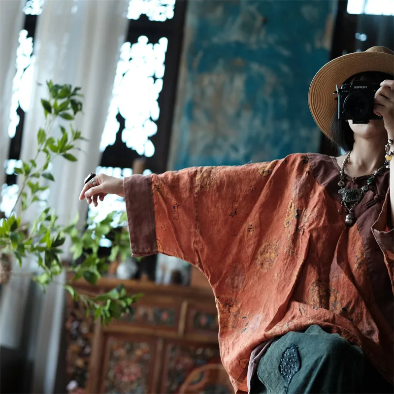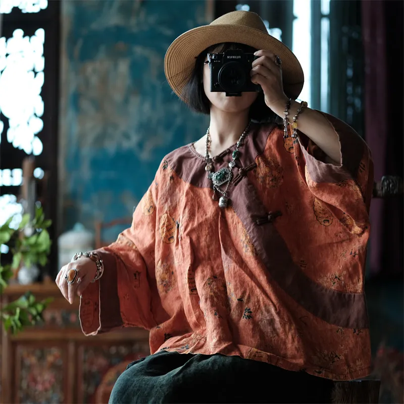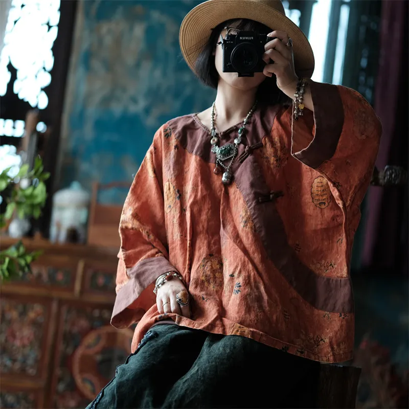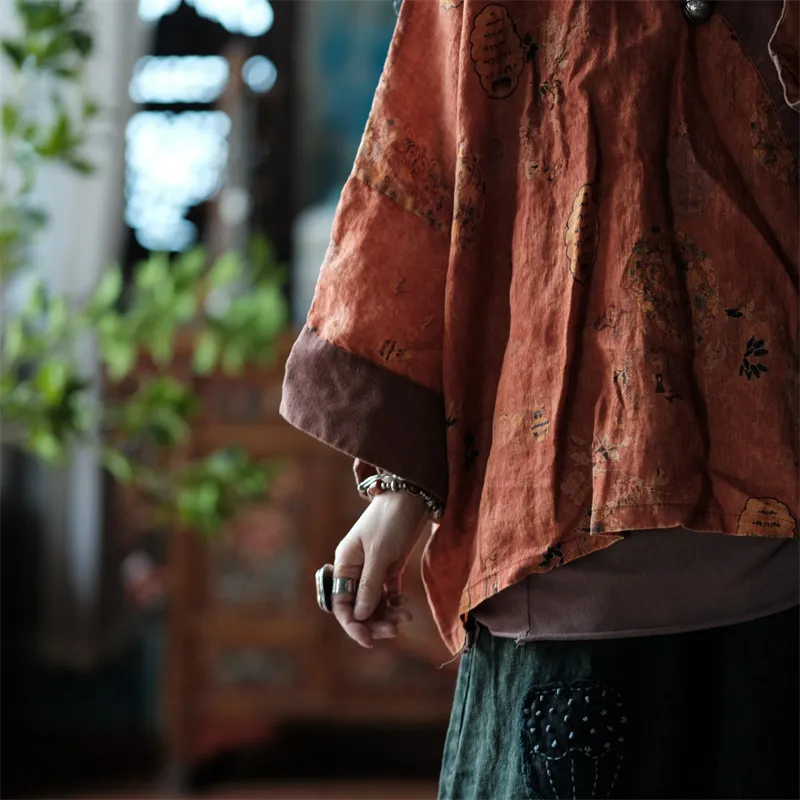 衣都精品- 2023新款仿香雲紗印花盤扣短袍上衣