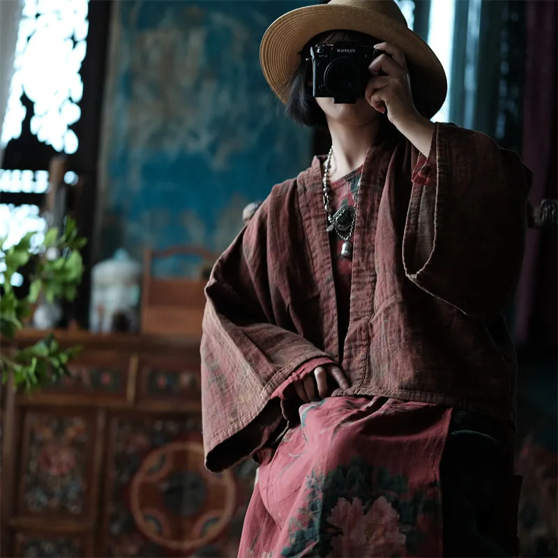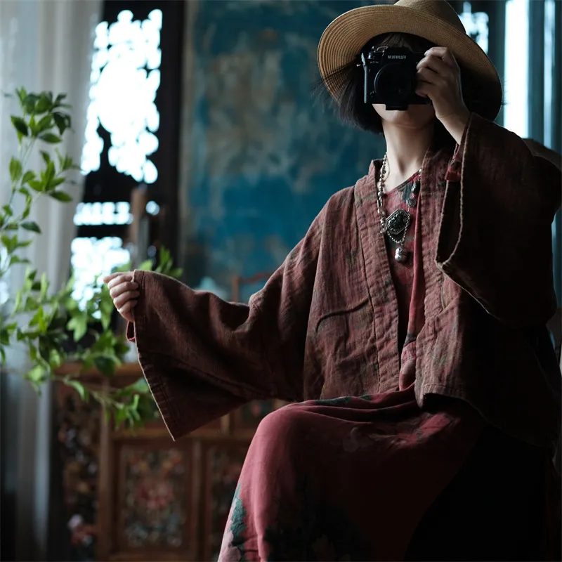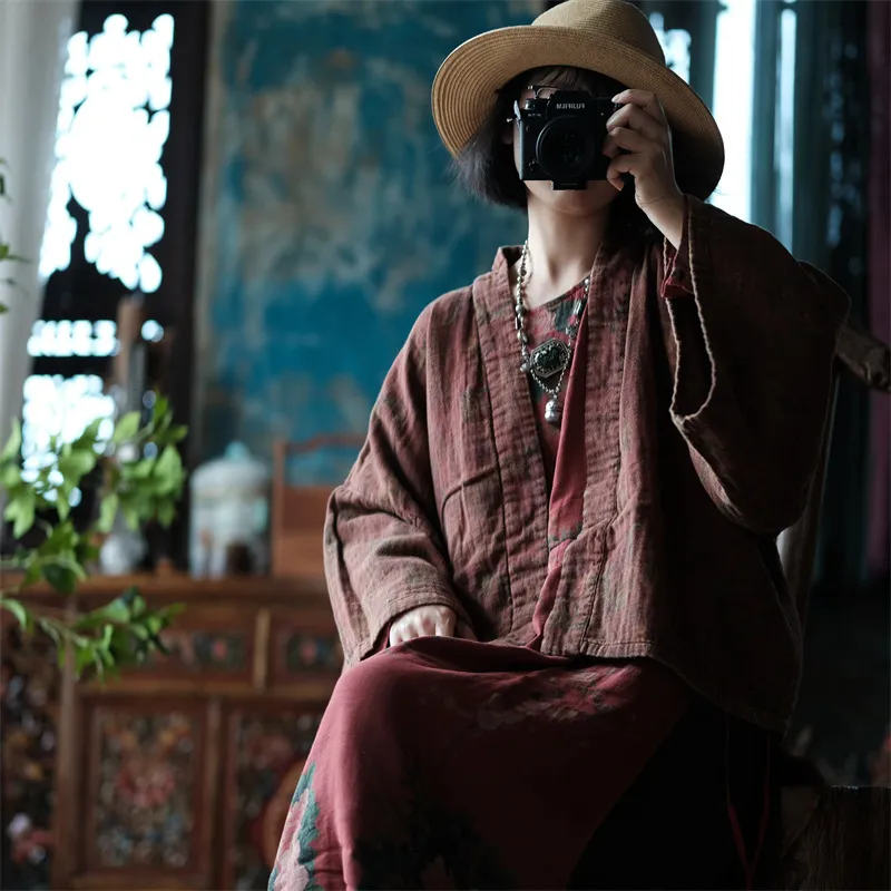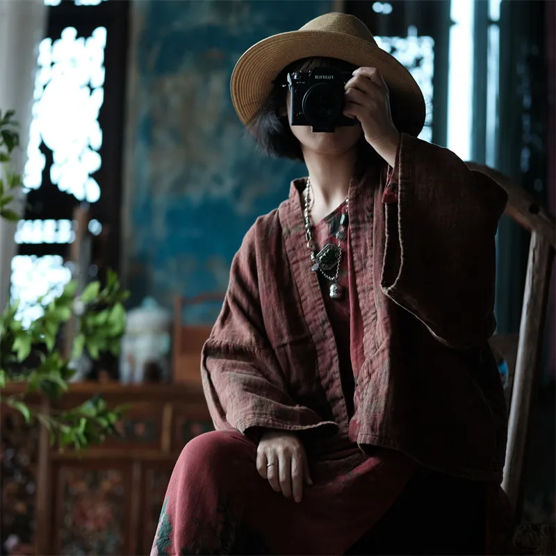 衣都精品- 2023新款復古雙層純棉盤扣對襟上衣