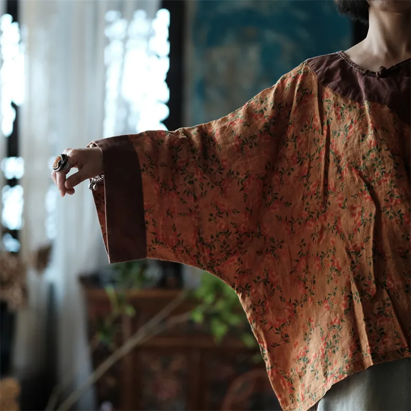 衣都精品- 2023新款仿香雲紗印花盤扣短袍上衣