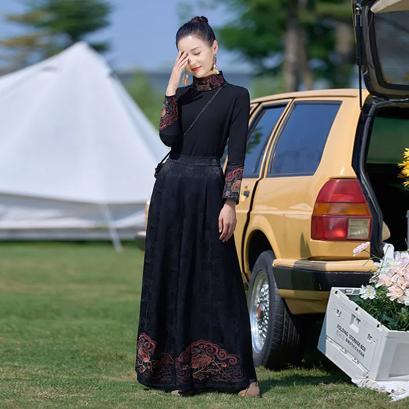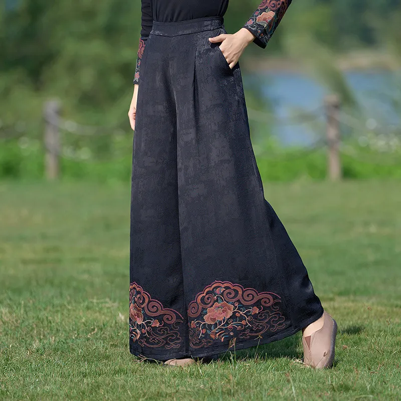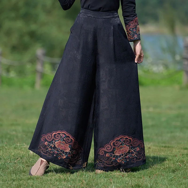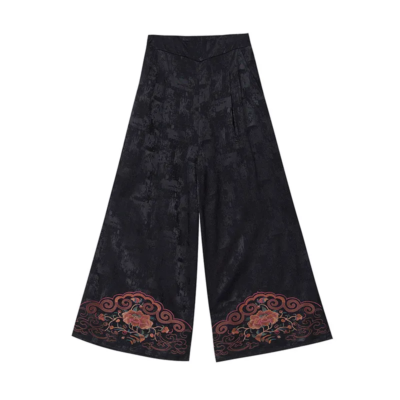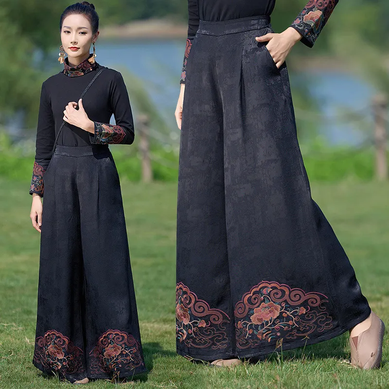 衣都精品- 2023新款民族風秋冬新款厚緞提花刺繡闊腿褲