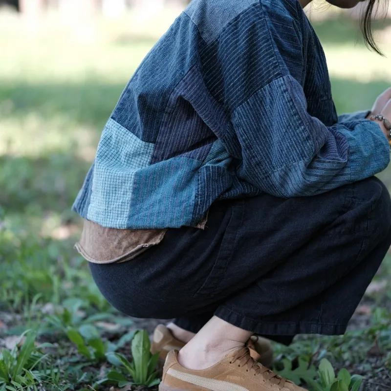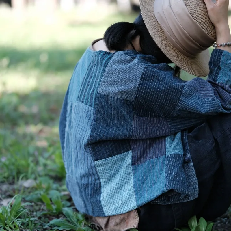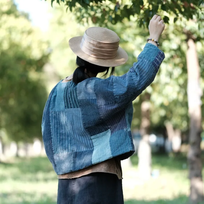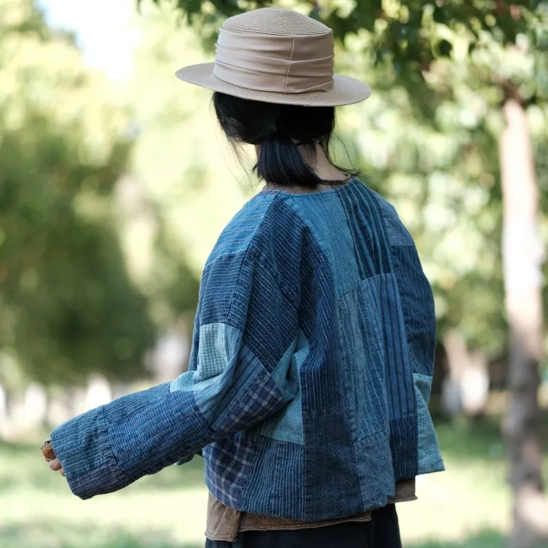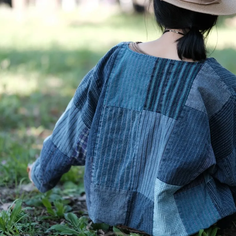 衣都精品- 2023新款老粗布拼布蝙蝠袖開襟外套