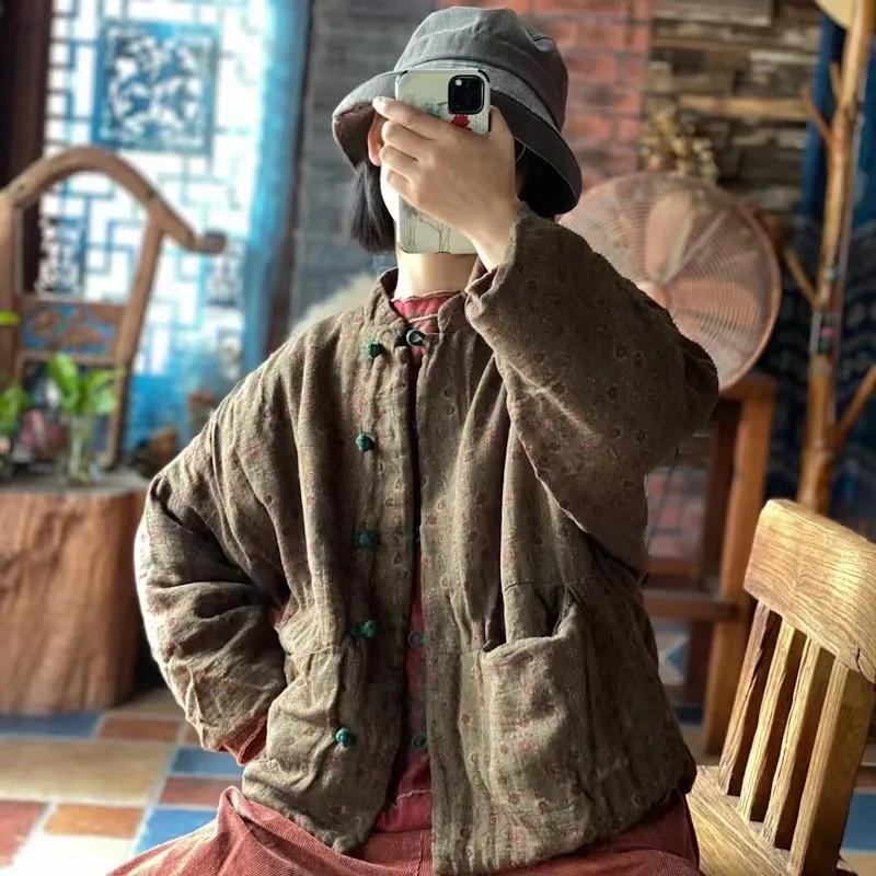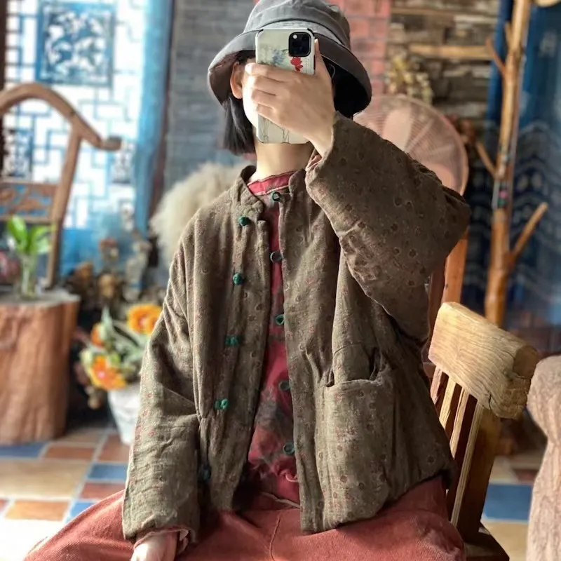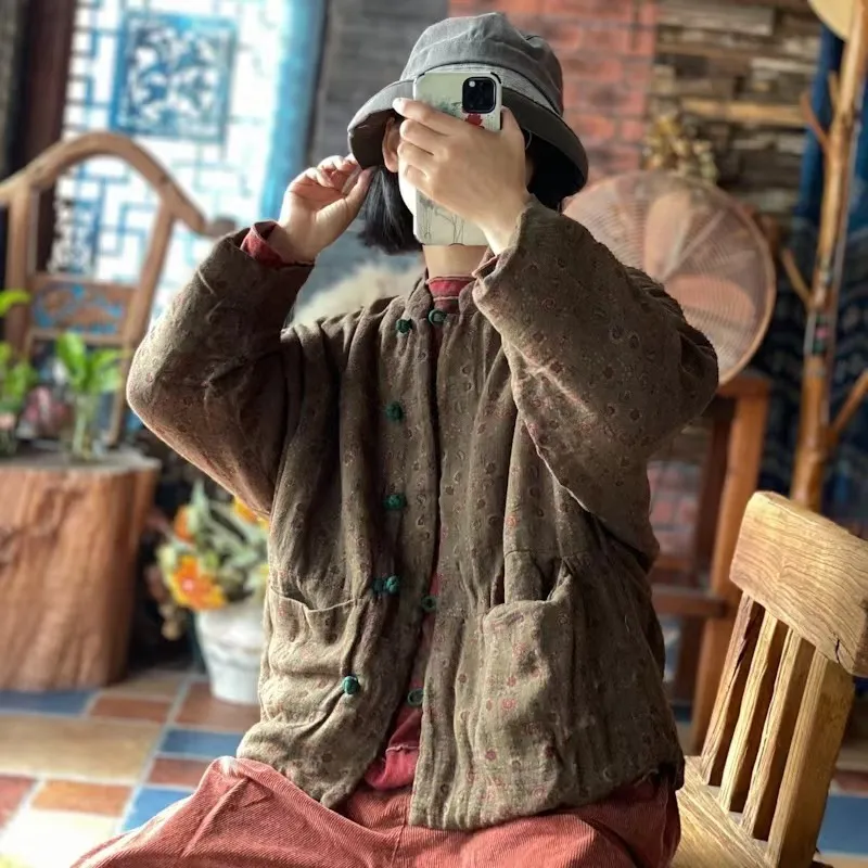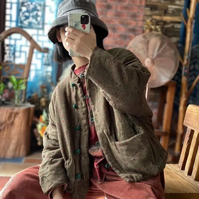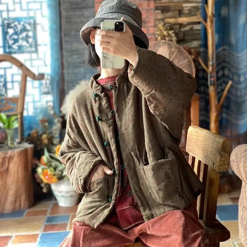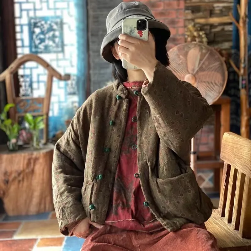 衣都精品- 2023新款中國風復古盤扣保暖提花外套