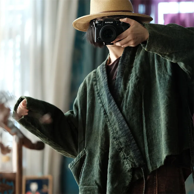 衣都精品- 2023新款復古文藝雙層棉紗對襟外套