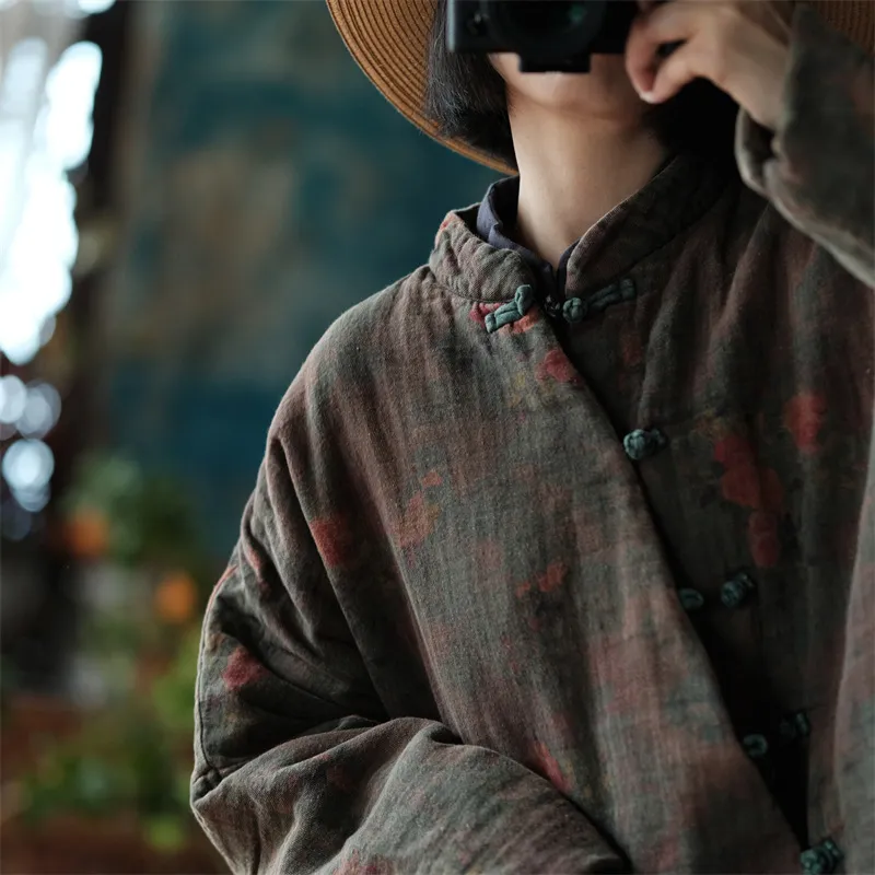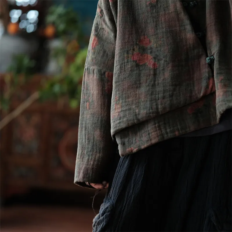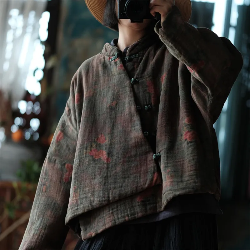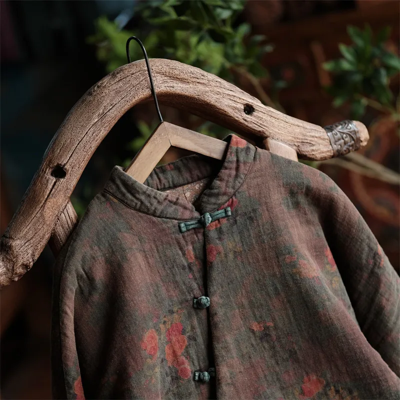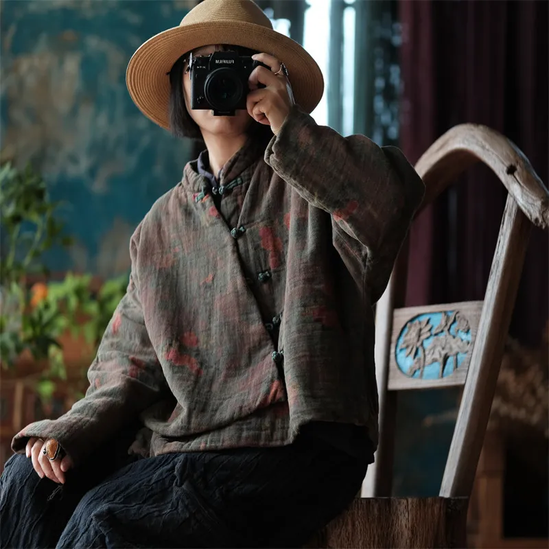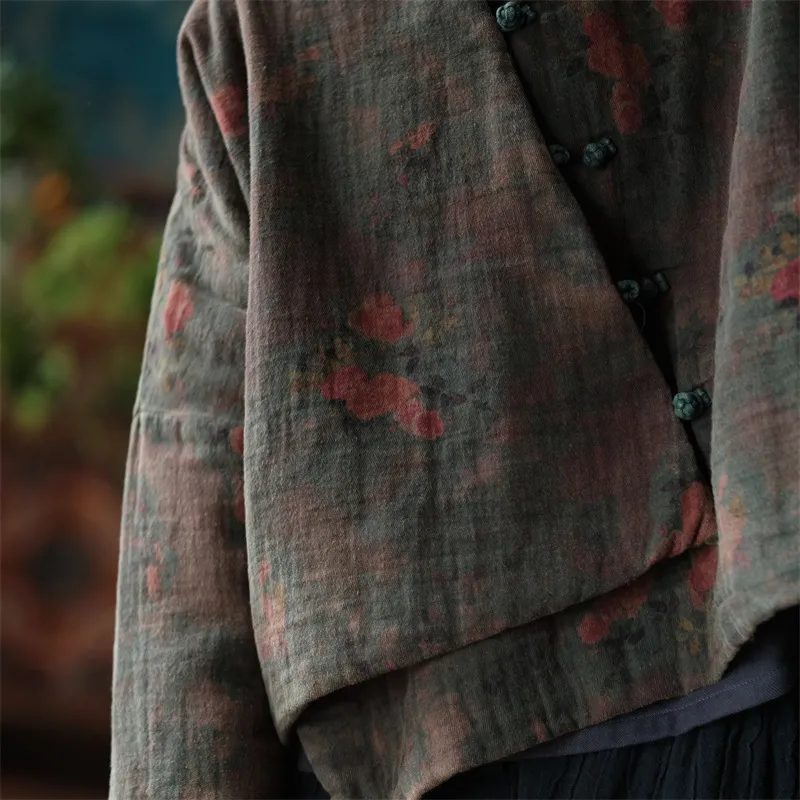 衣都精品- 2023新款復古文藝數位印花斜襟外套