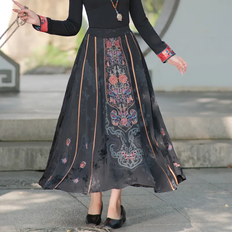 衣都精品- 2023新款復古文藝高級水洗貼花半身裙