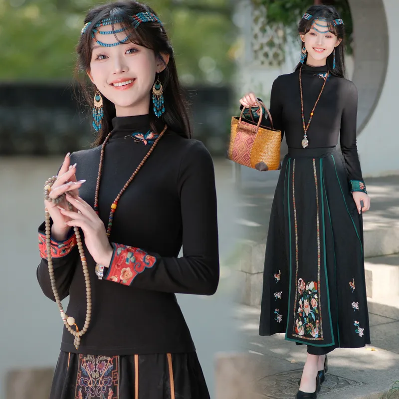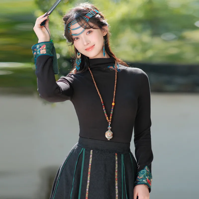 衣都精品- 2023新款民族風重工刺繡半高領繡花上衣