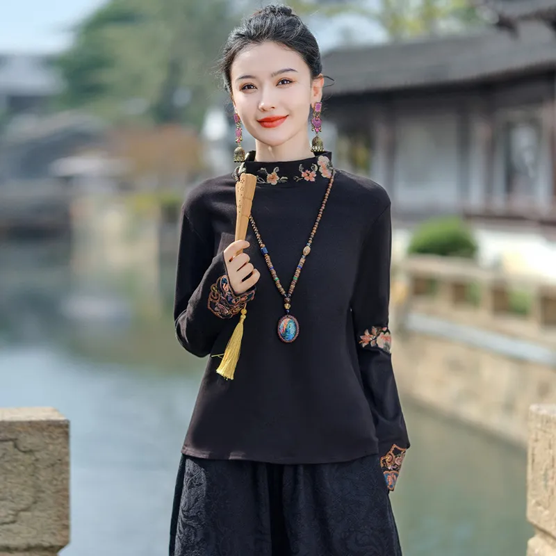 衣都精品- 2023新款民族風重工刺繡半高領繡花上衣