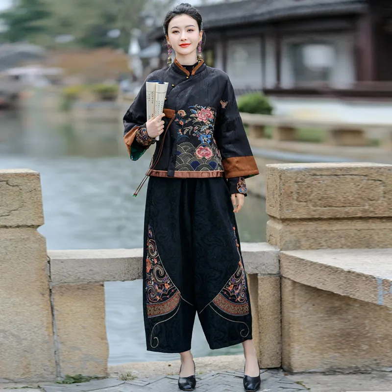 衣都精品- 2023新款民族風提花刺繡寬鬆哈倫褲