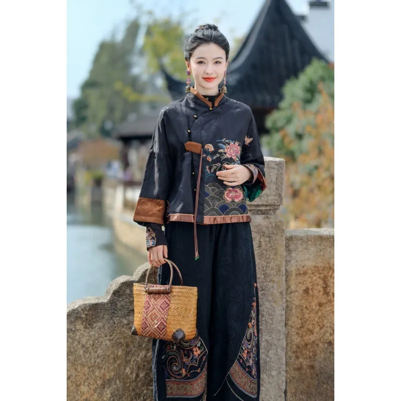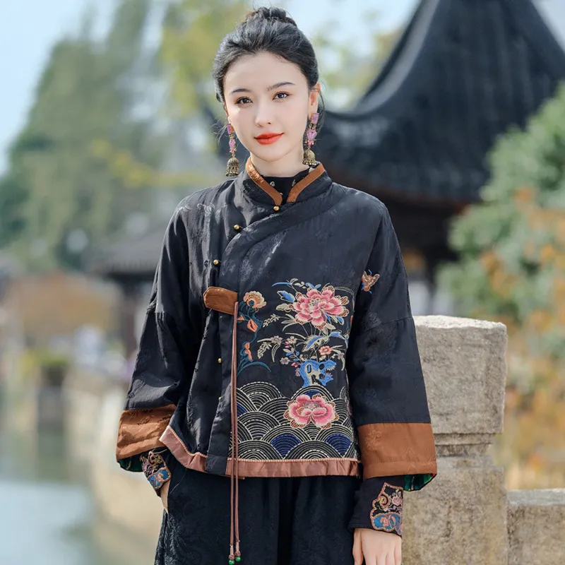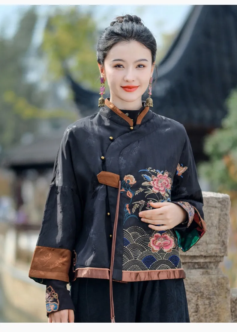 衣都精品- 2023新款民族風提花刺繡盤扣短版外套