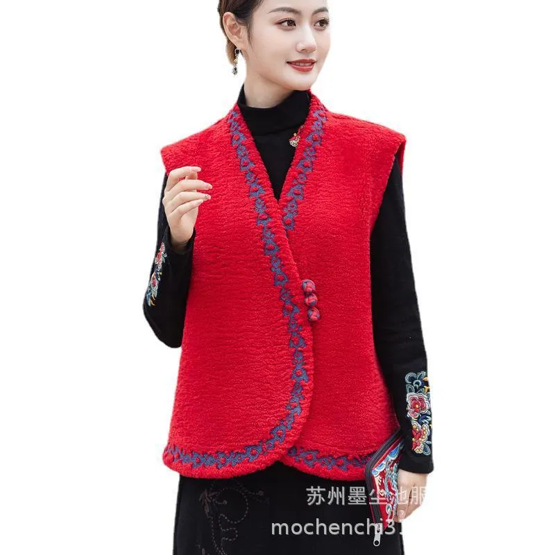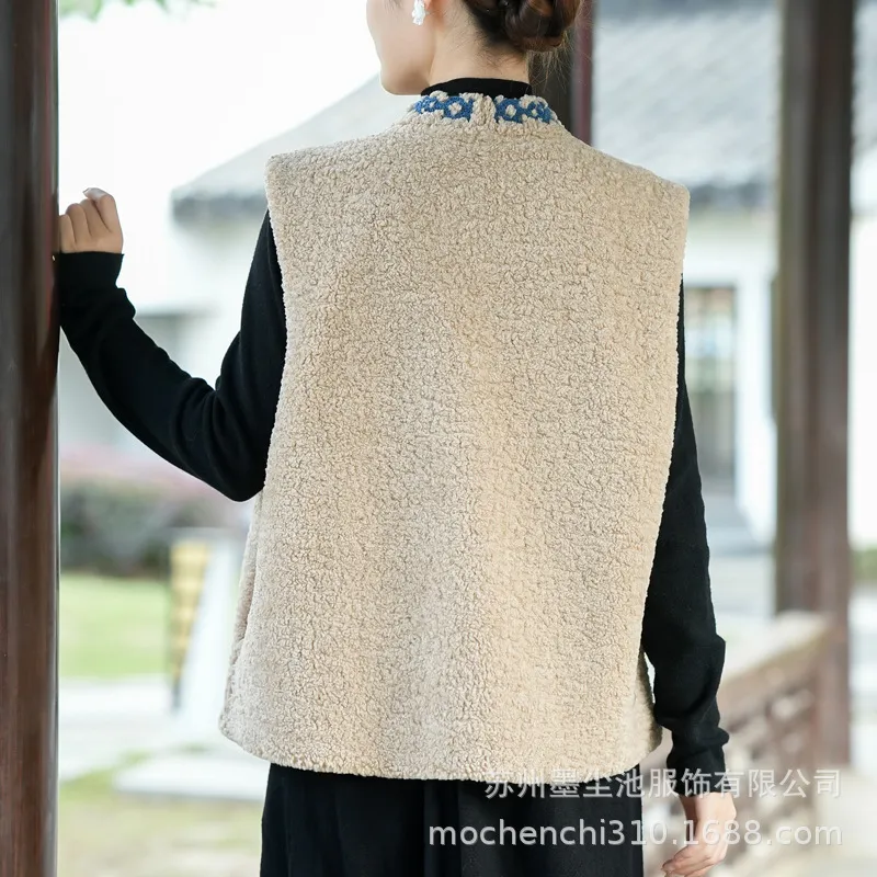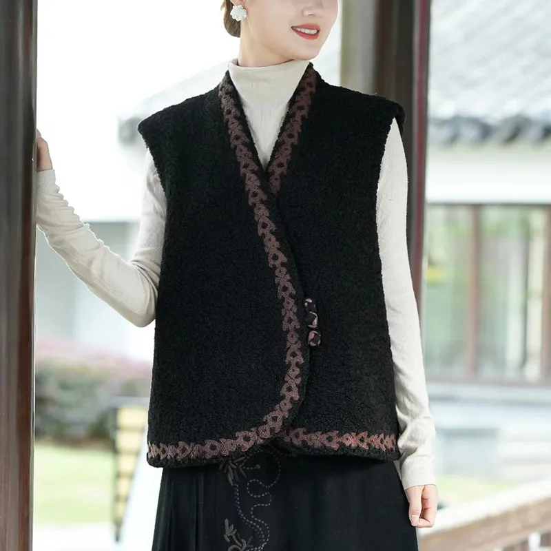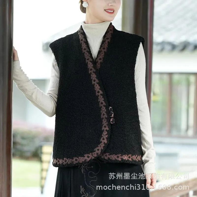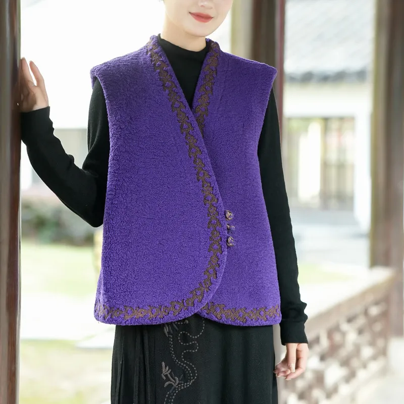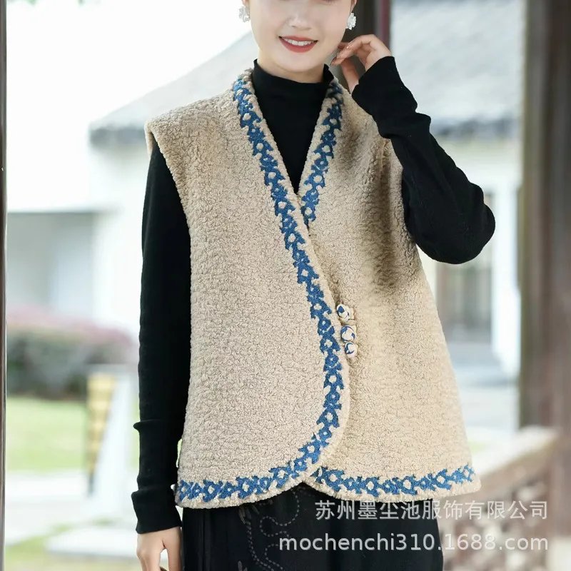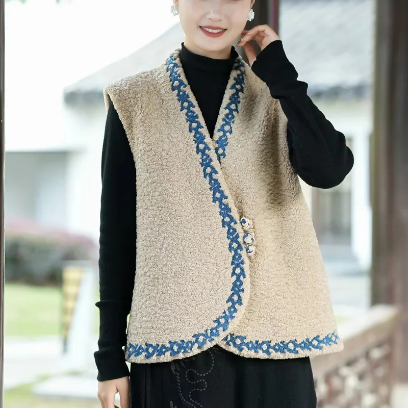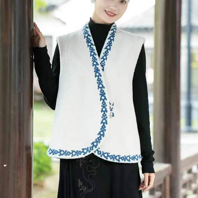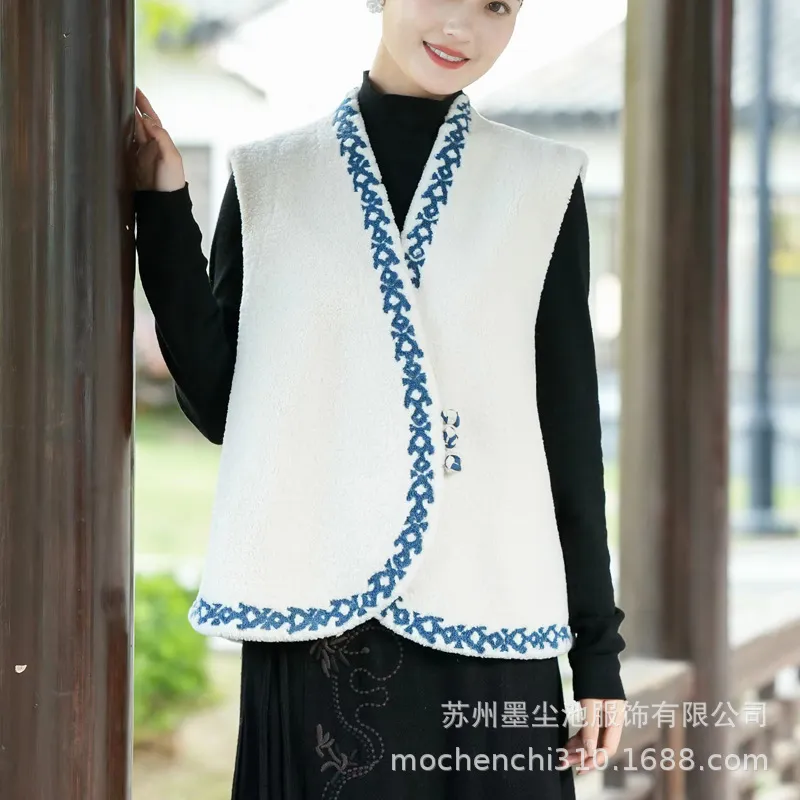 衣都精品- 2023新款民族風V領刺繡盤扣馬甲外套