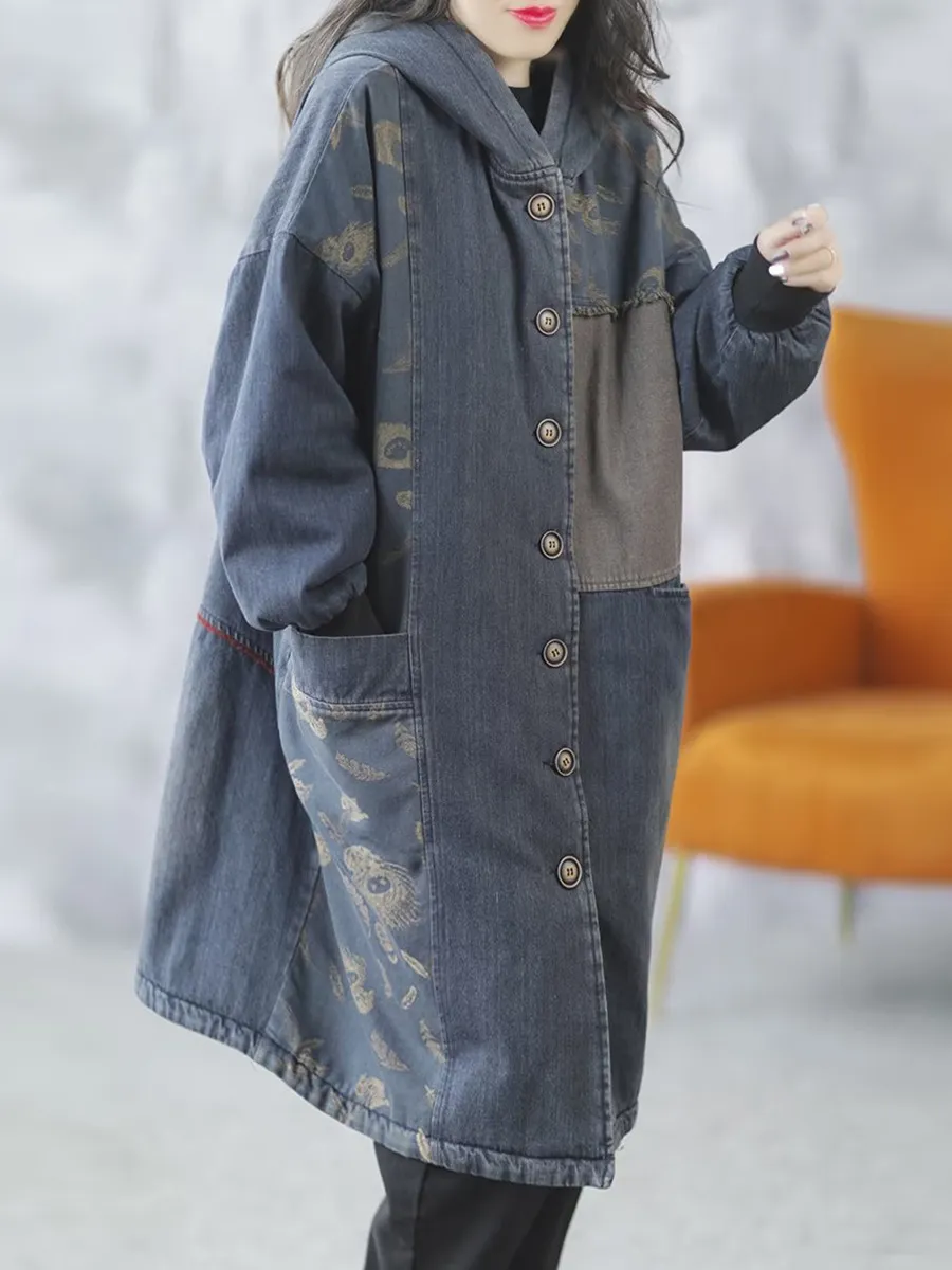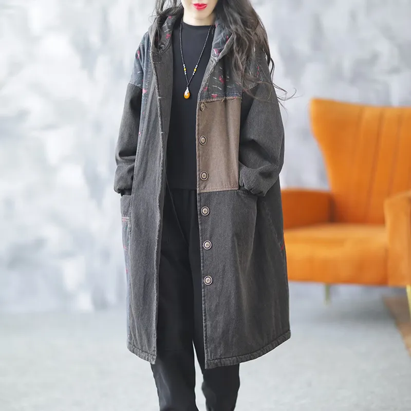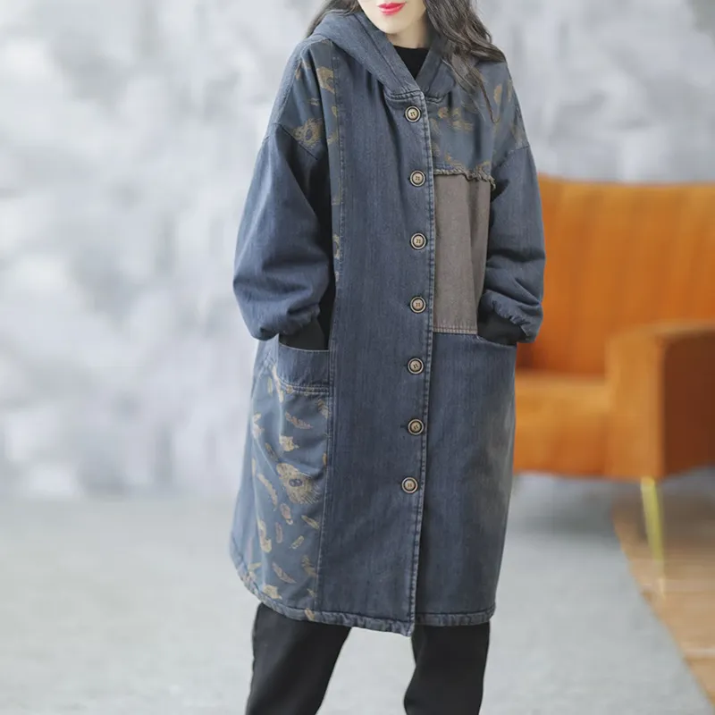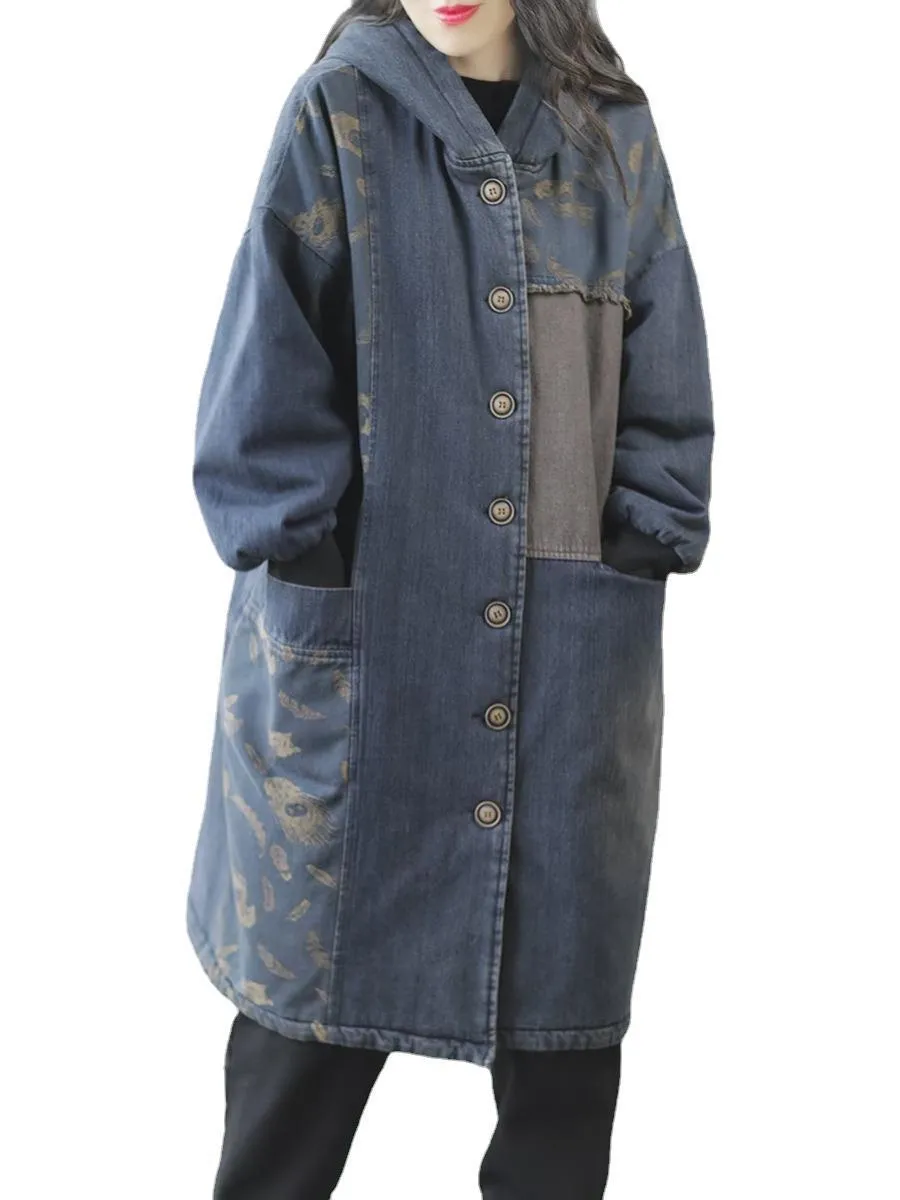 衣都精品- 2023新款連帽大口袋砂洗牛仔長款風衣外套