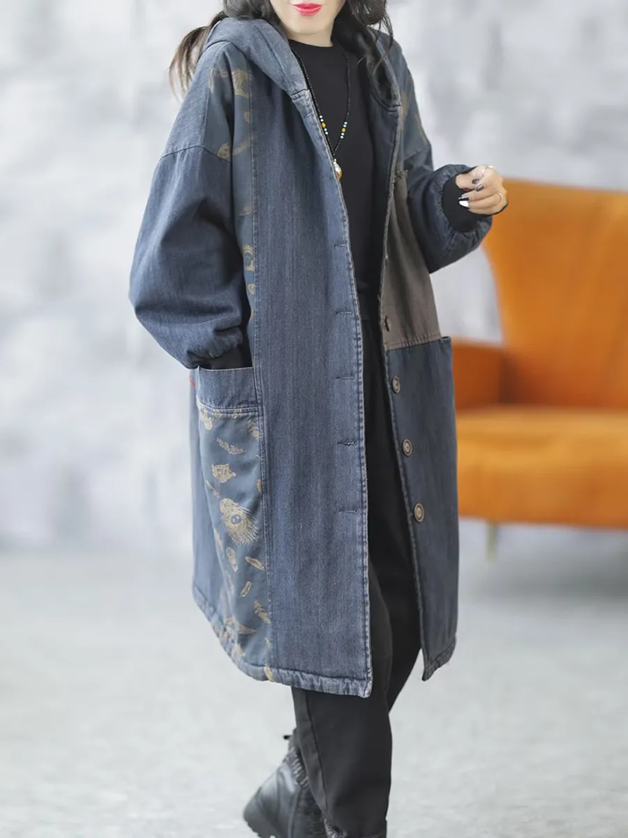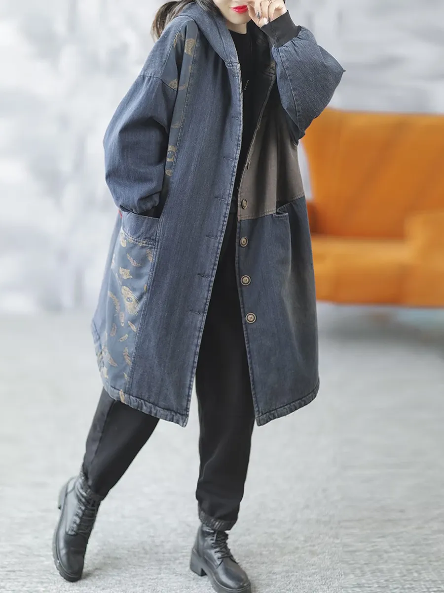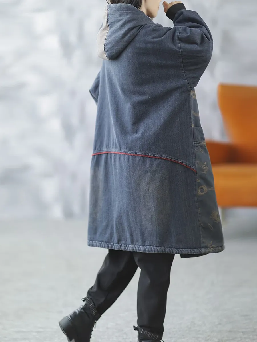 衣都精品- 2023新款連帽大口袋砂洗牛仔長款風衣外套