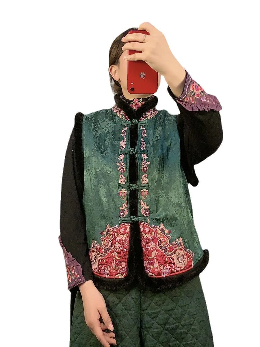 衣都精品- 2023新款民族風提花刺繡拼接加絨馬甲外套