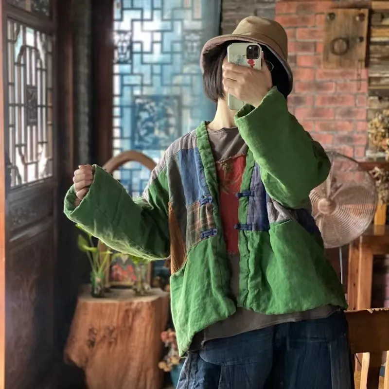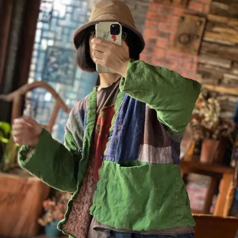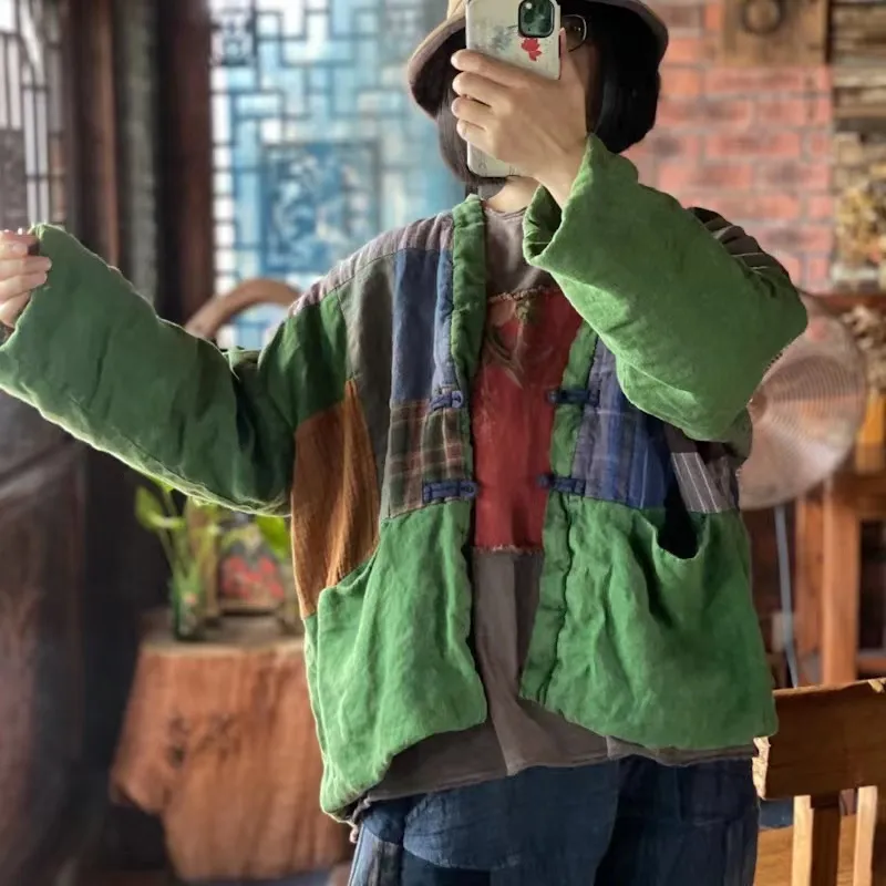 衣都精品- 2023新款復古文藝做舊雪花洗拼布寬鬆外套