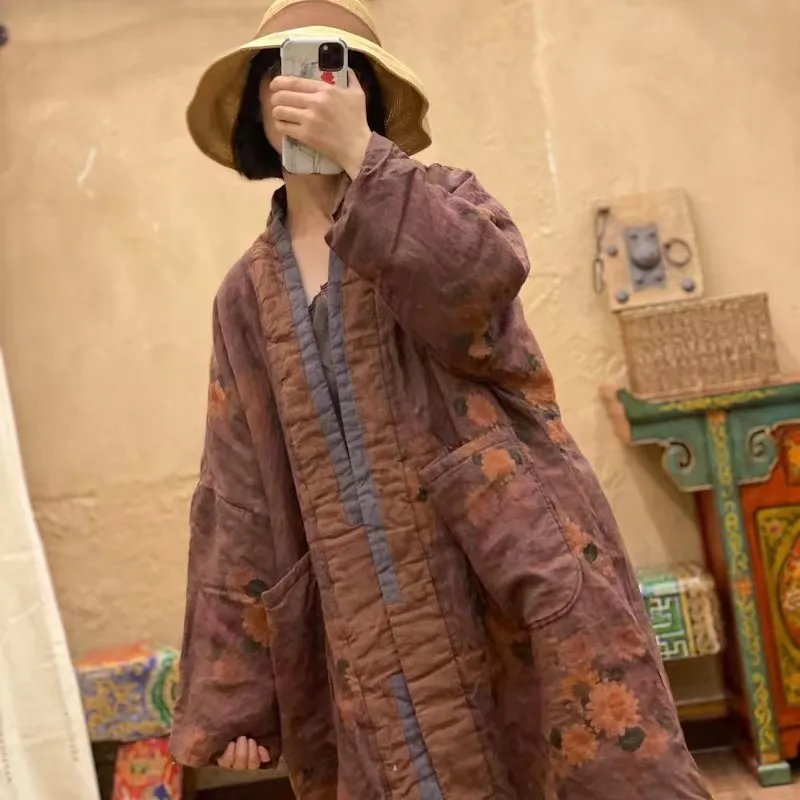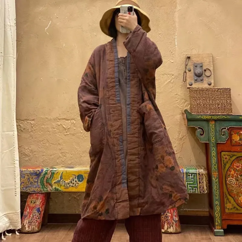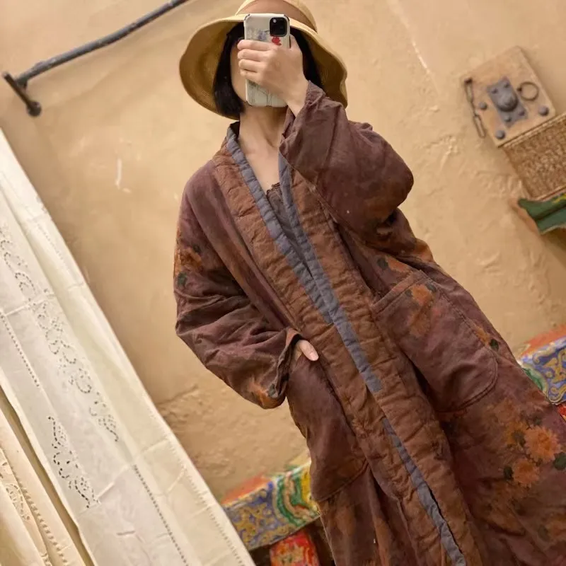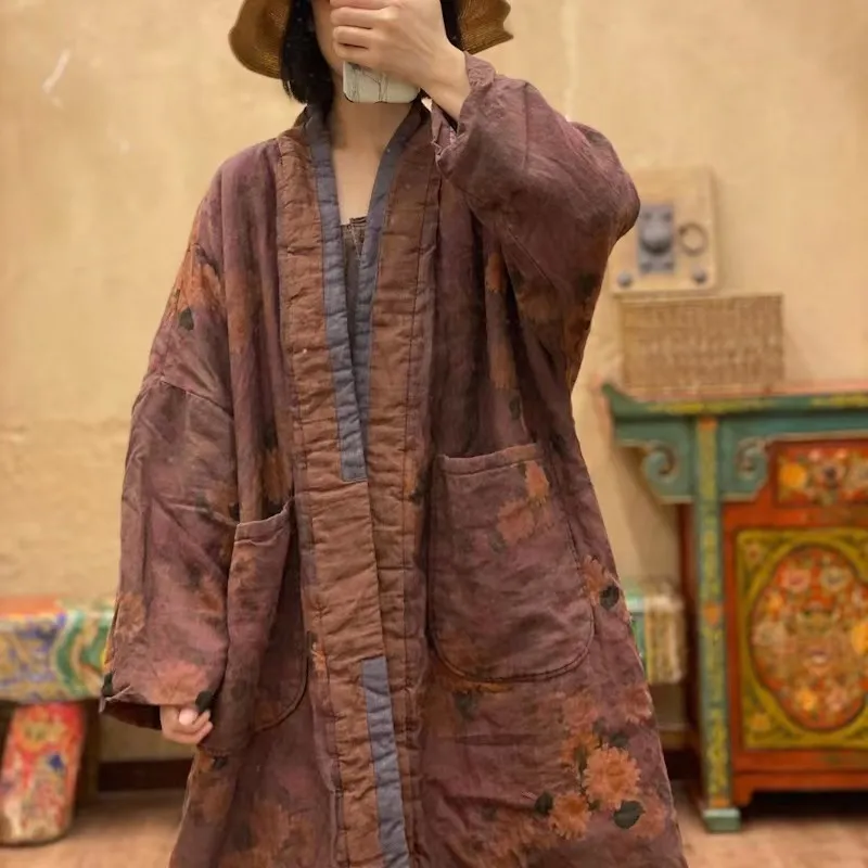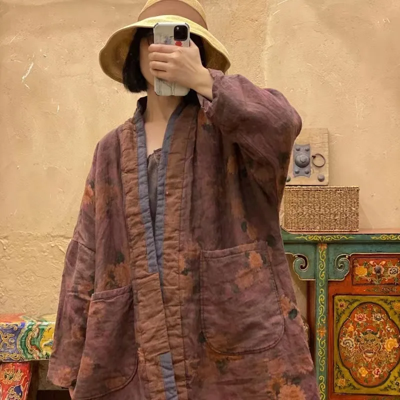 衣都精品- 2023新款復古仿香雲紗印花無扣寬鬆外套