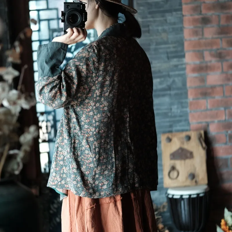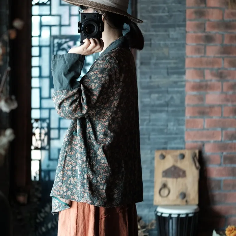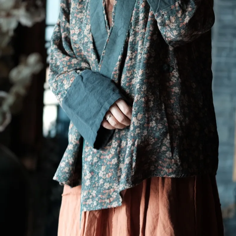 衣都精品- 2023新款數位印花復古文藝斜襟上衣