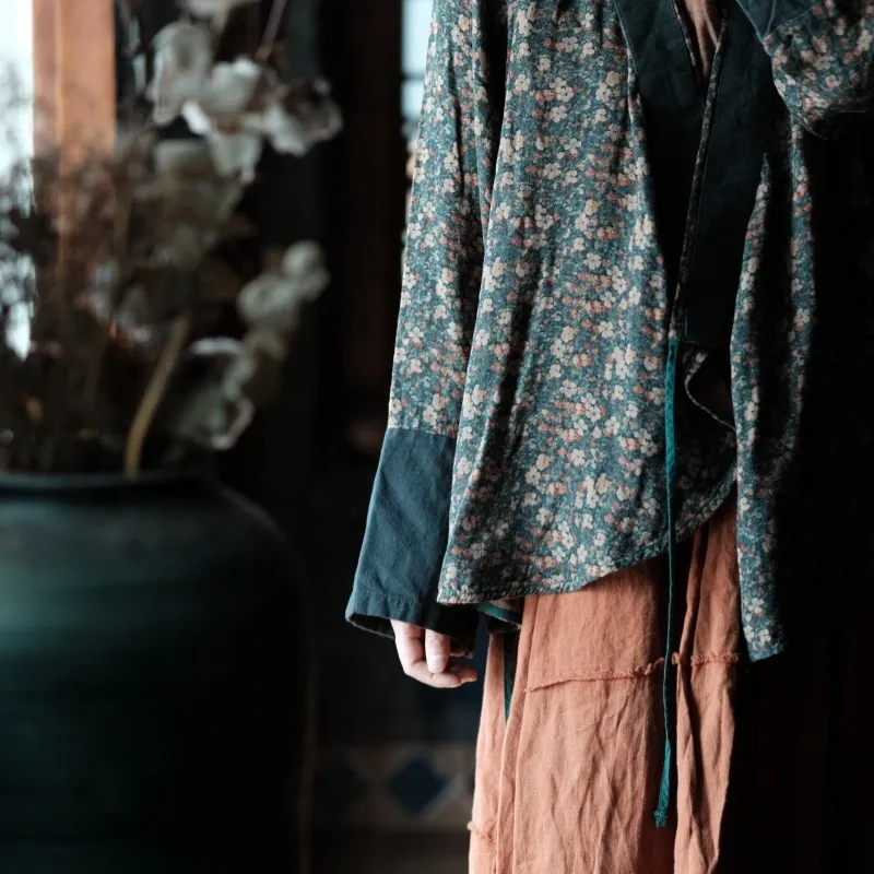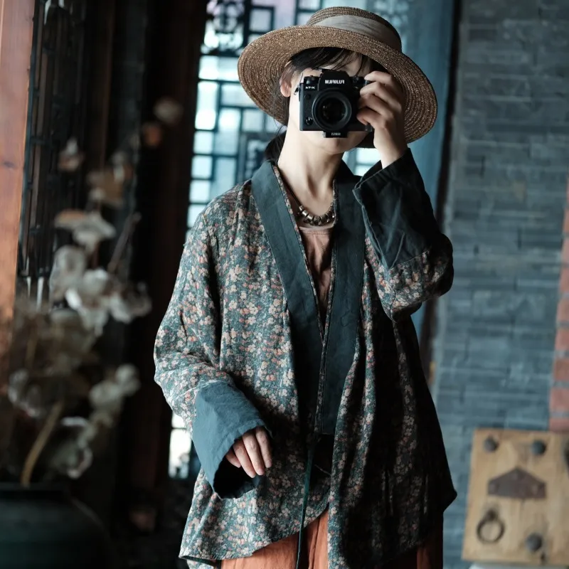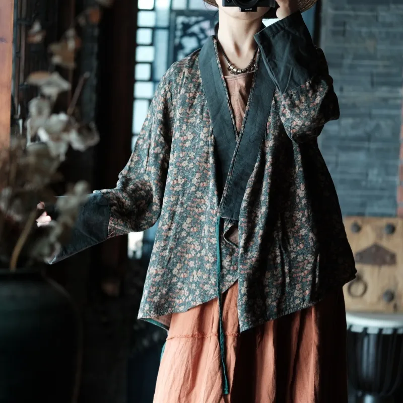 衣都精品- 2023新款復古仿香雲紗印花無扣寬鬆外套