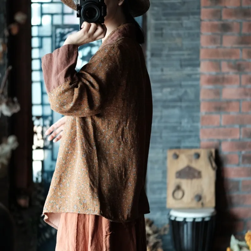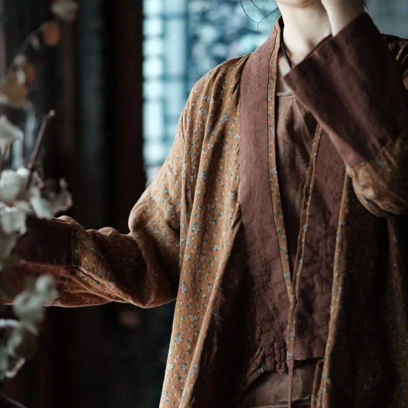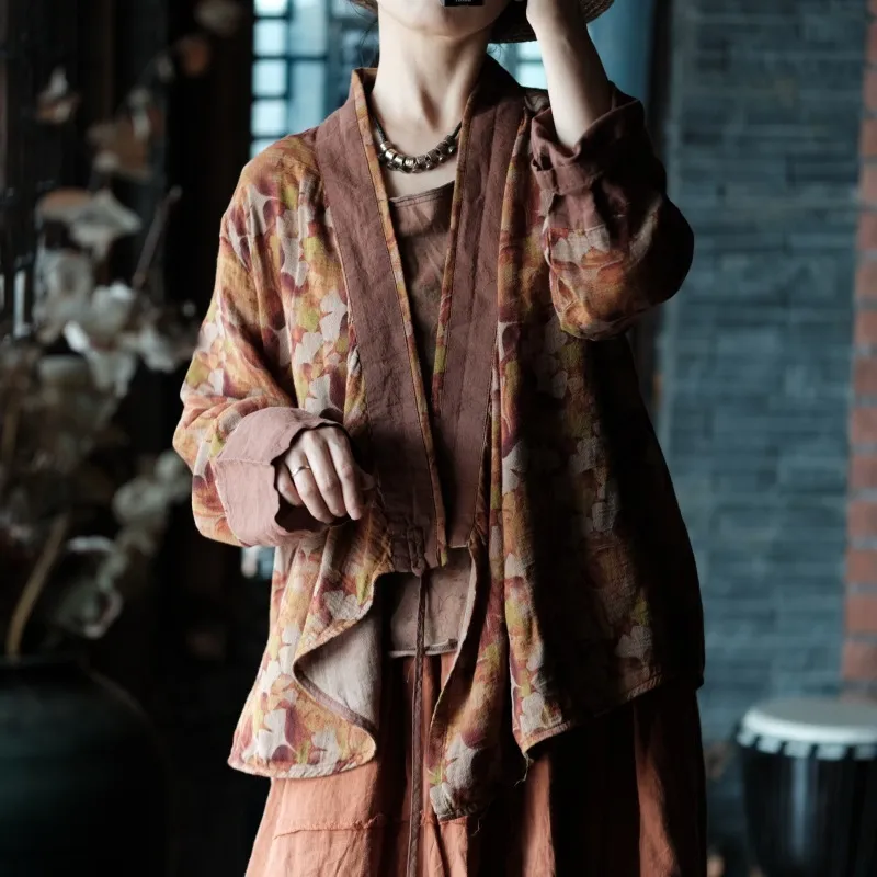 衣都精品- 2023新款復古仿香雲紗印花無扣寬鬆外套