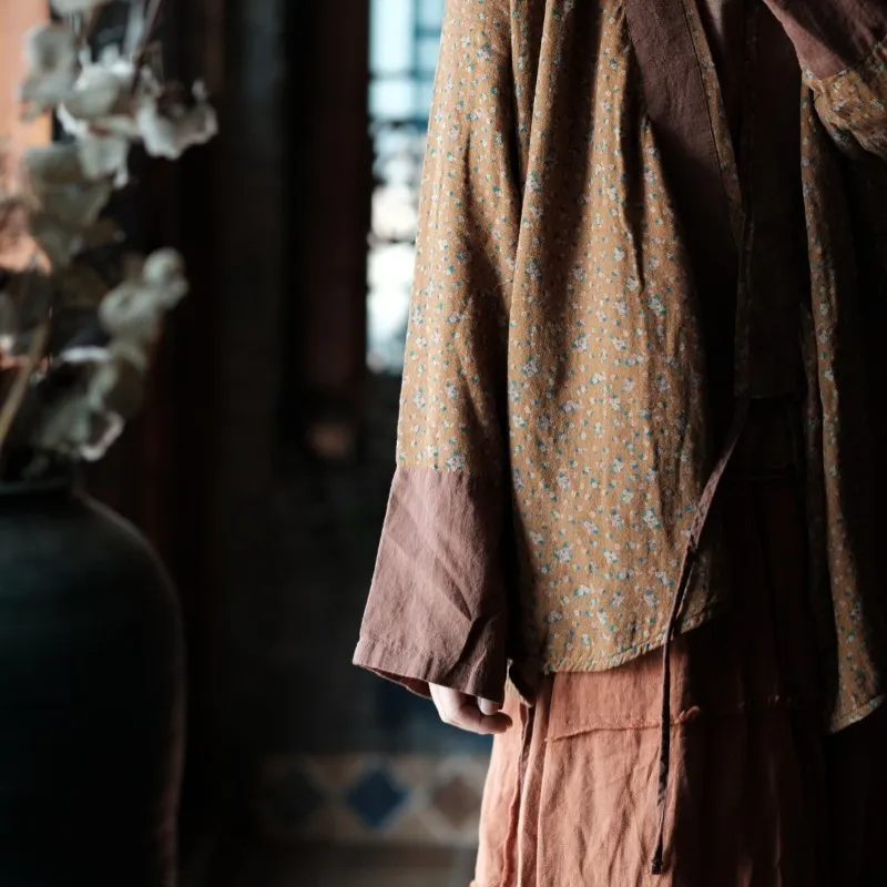 衣都精品- 2023新款數位印花復古文藝斜襟上衣