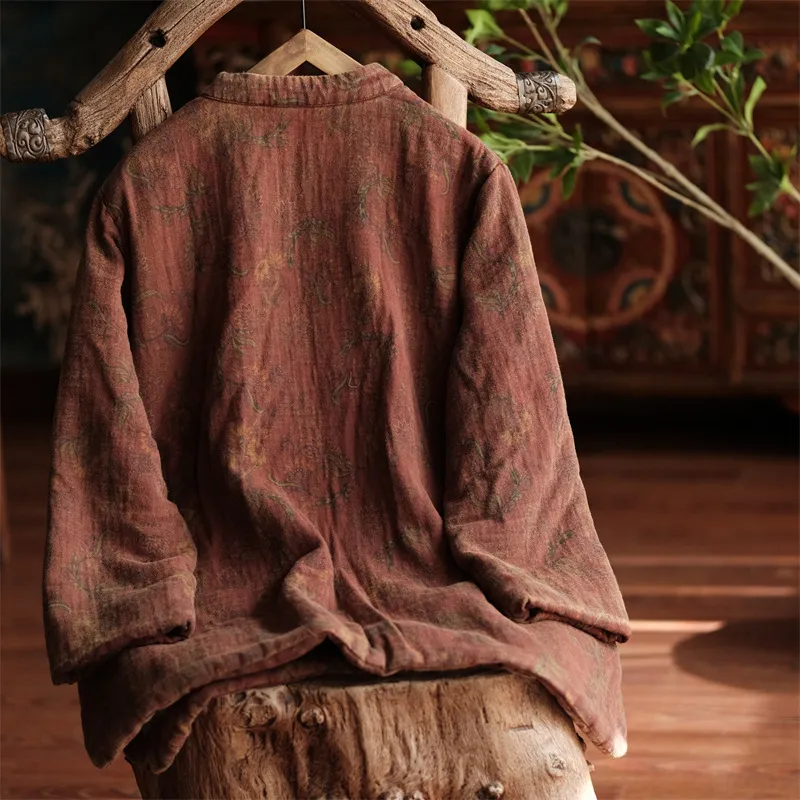 衣都精品- 2023新款數位印花復古文藝斜襟上衣