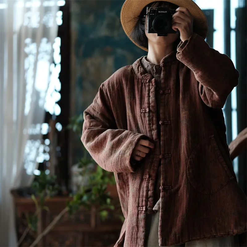 衣都精品- 2023新款復古水洗中式立領盤扣外套