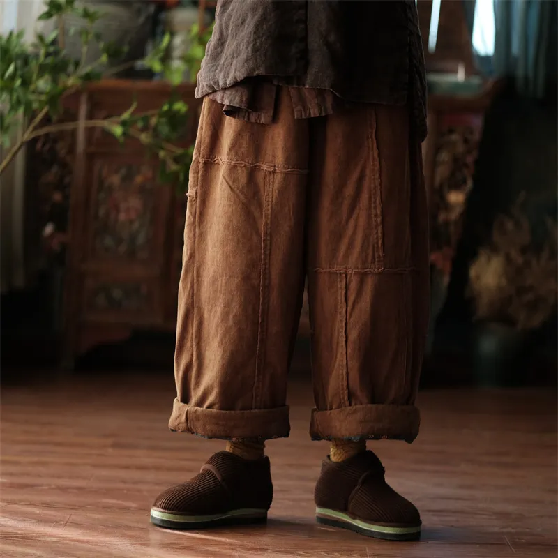 衣都精品- 2023新款復古寬鬆毛邊百搭鬆緊腰闊腿褲