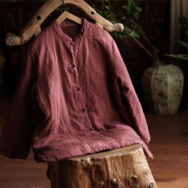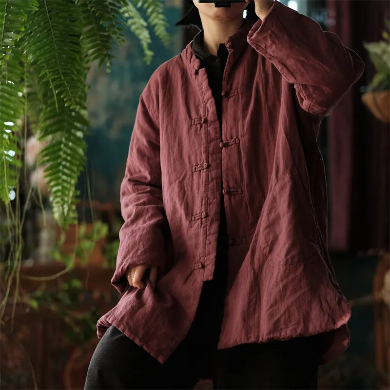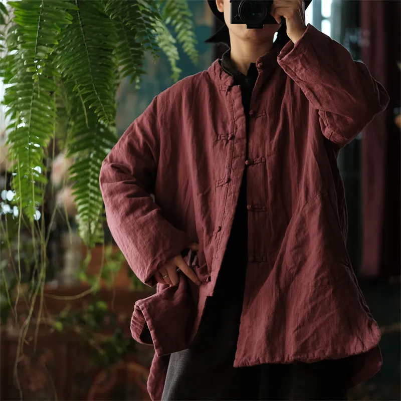 衣都精品- 2023新款復古圓領對襟雙層夾棉外套