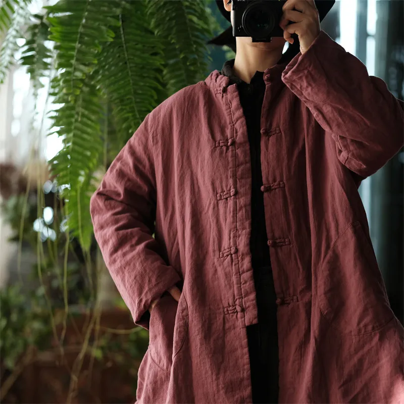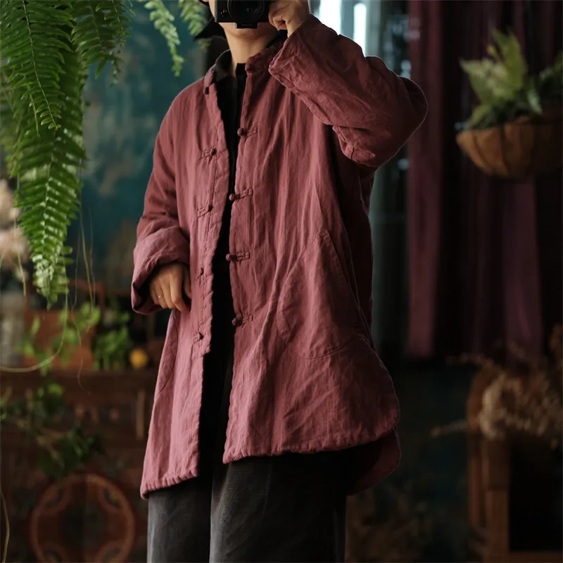衣都精品- 2023新款復古寬鬆一粒扣亞麻棉袍外套