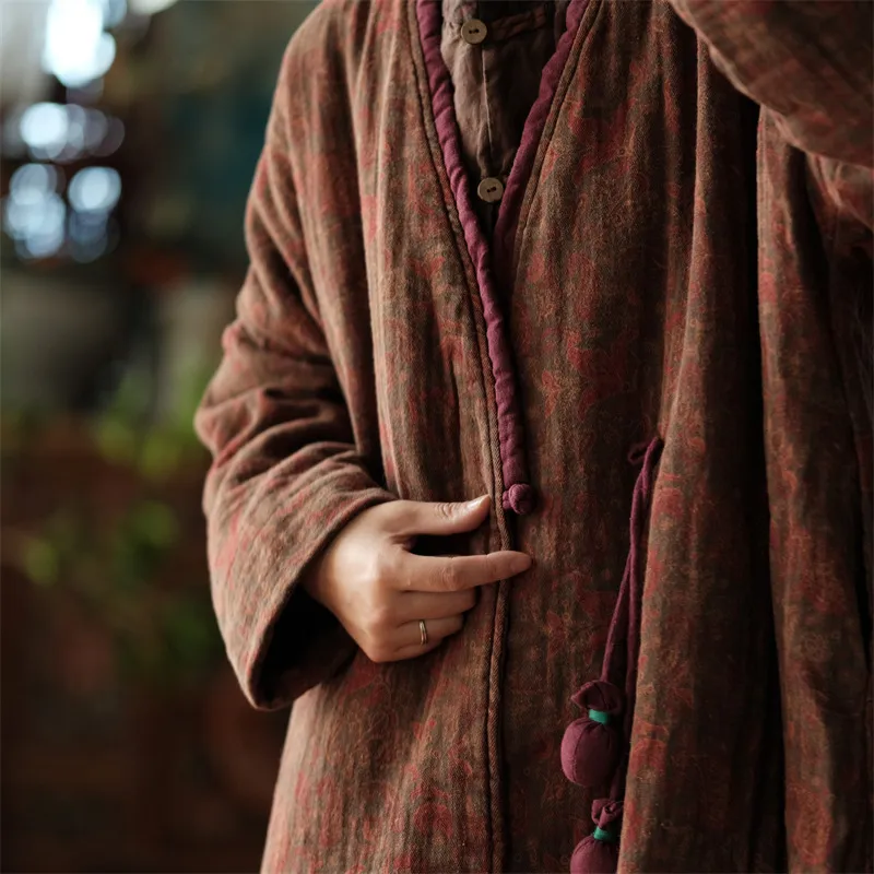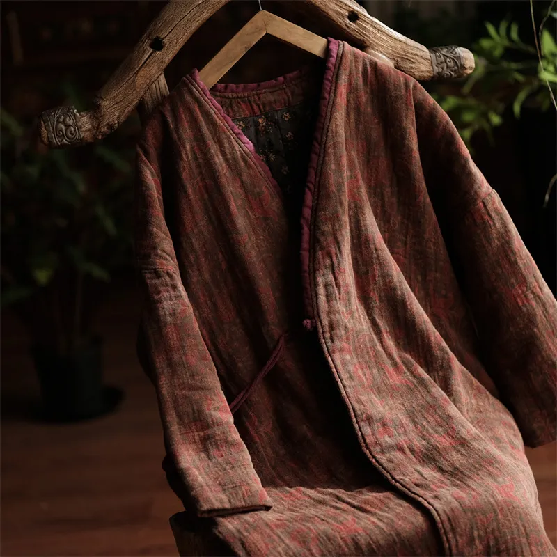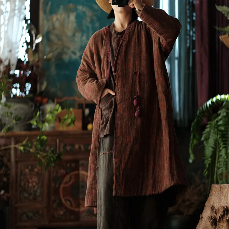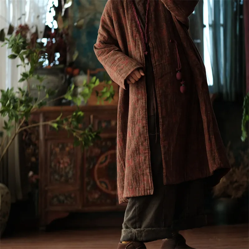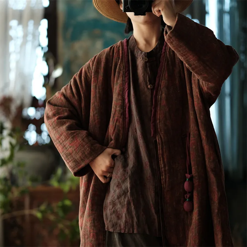 衣都精品- 2023新款懷舊文藝寬鬆夾棉繫帶外套