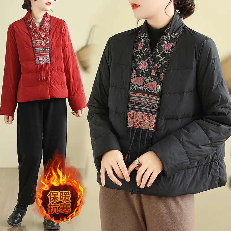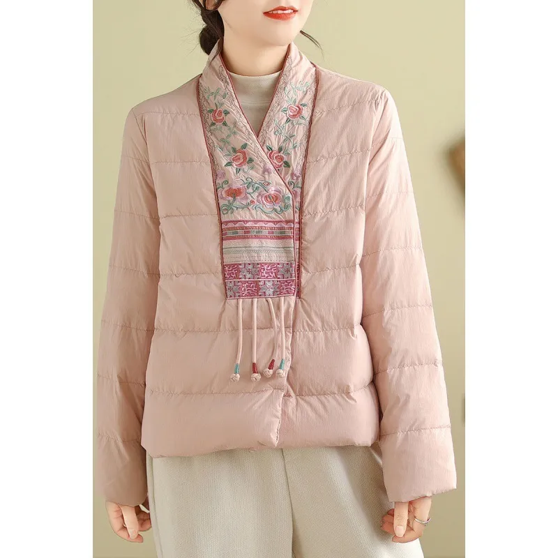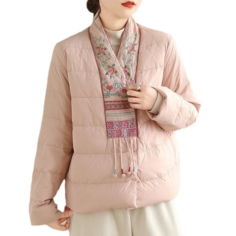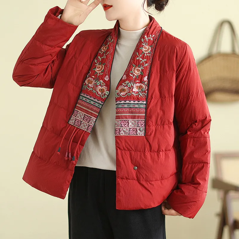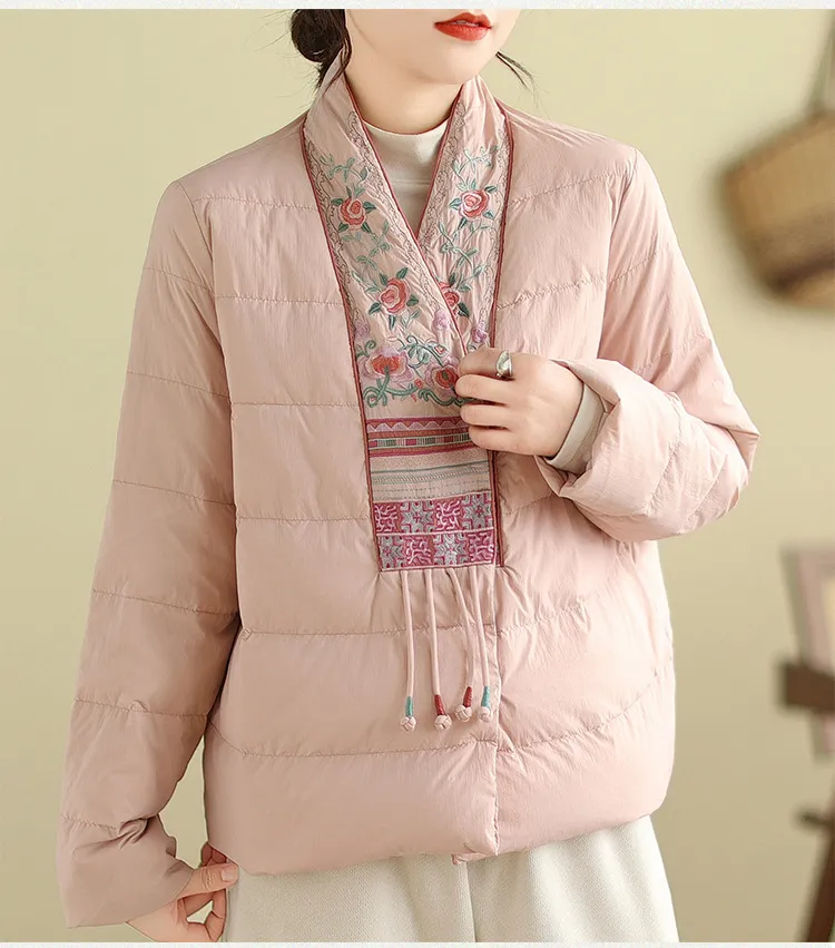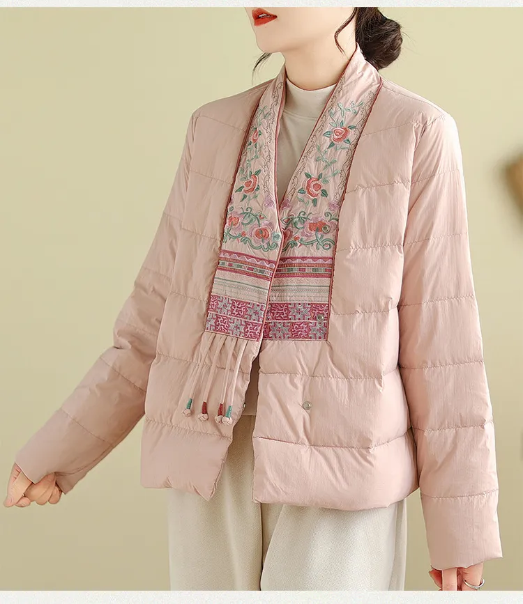 衣都精品- 2023新款民族風V領刺繡輕薄棉服外套