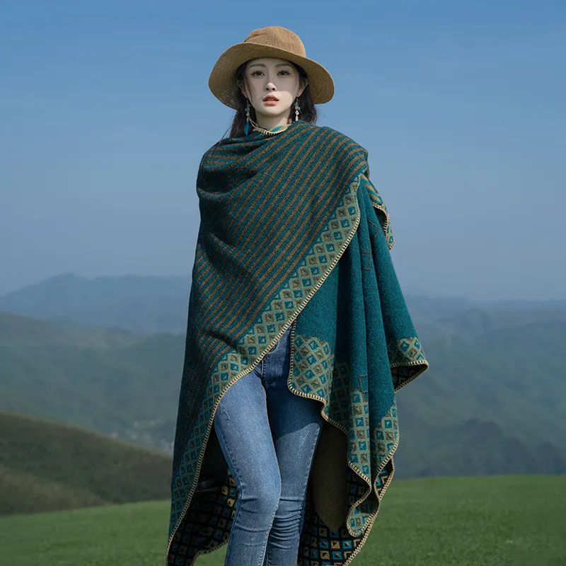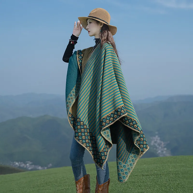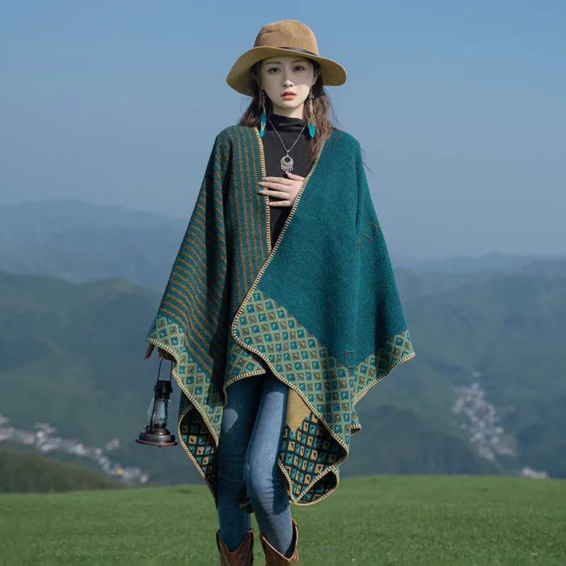 衣都精品- 2023新款民族風拍照開襟斗篷披風披肩