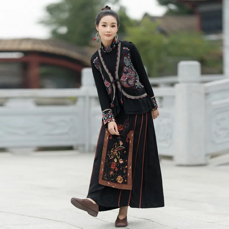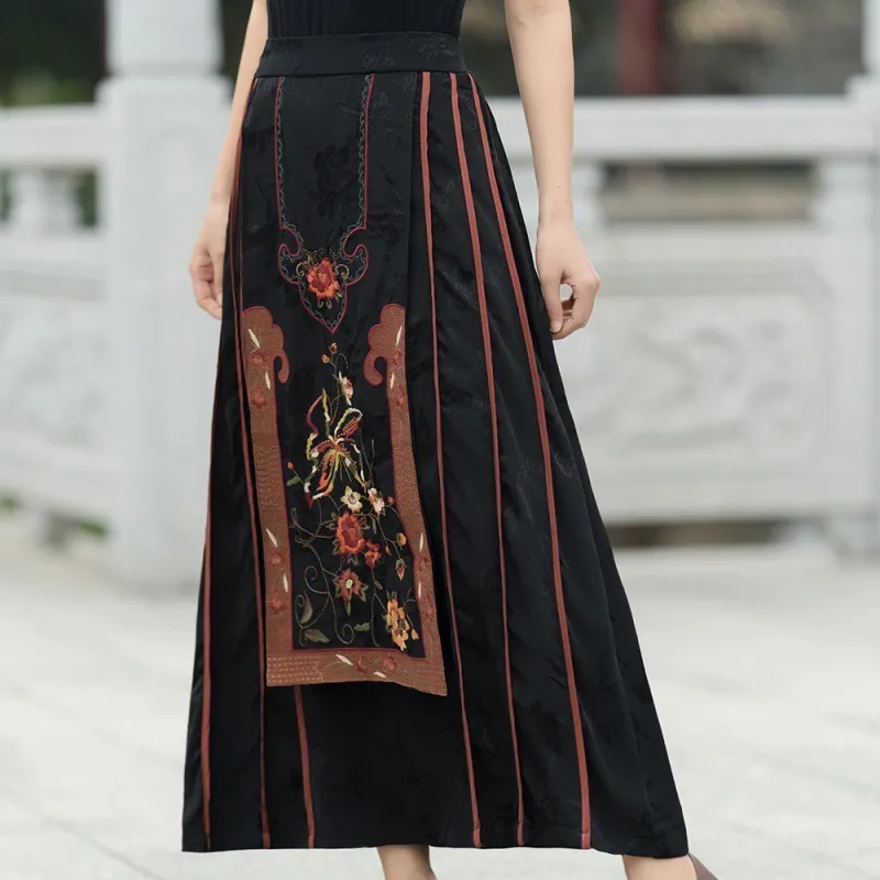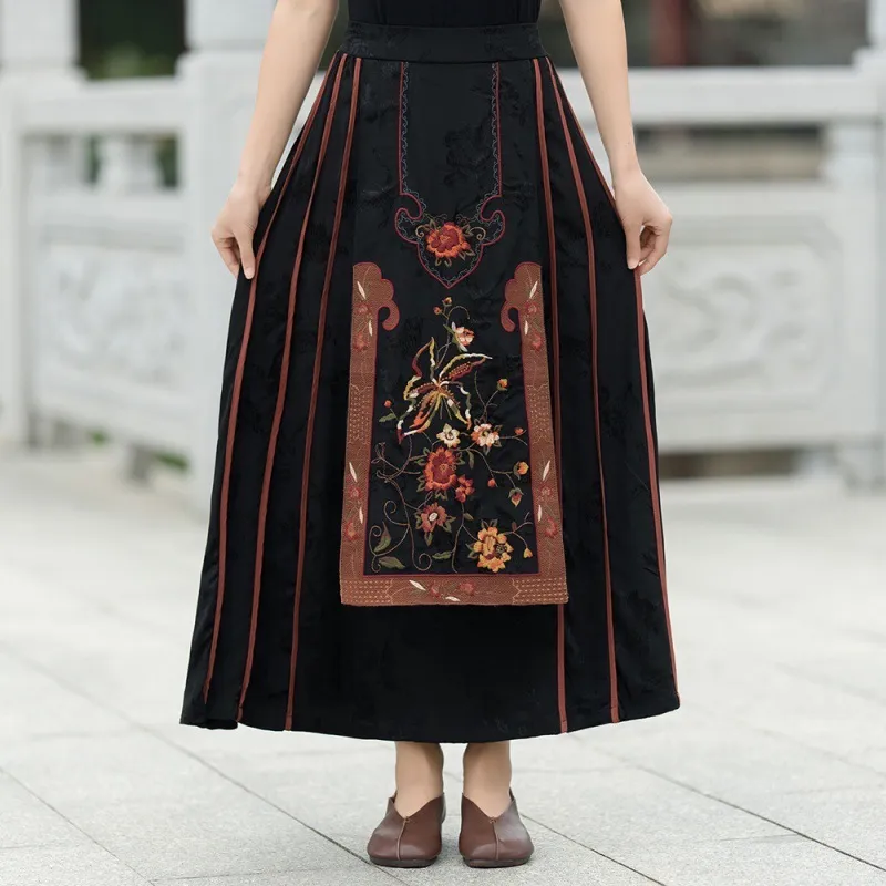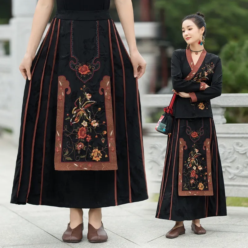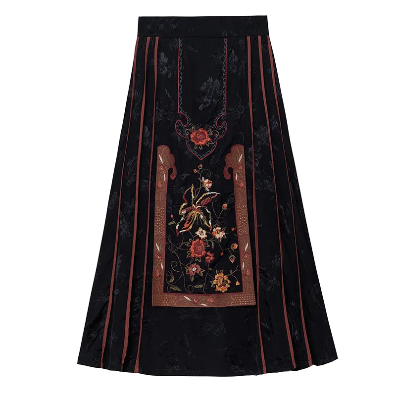 衣都精品- 2023新款民族風重工刺繡緞面提花鬆緊腰馬面裙