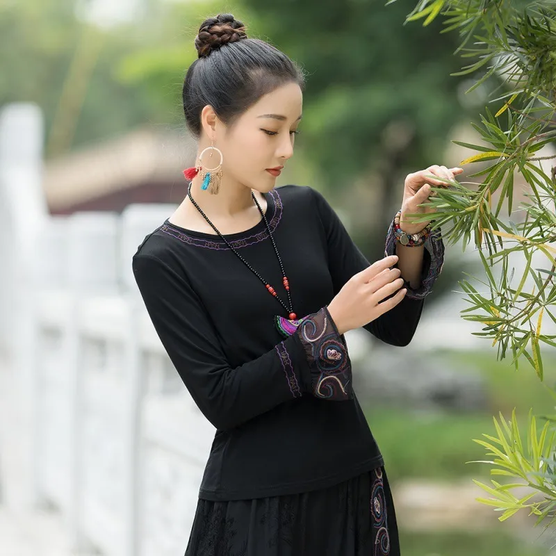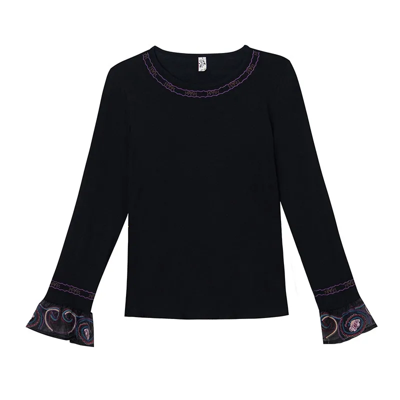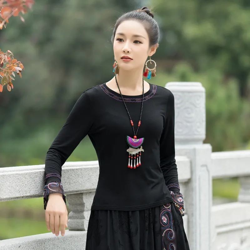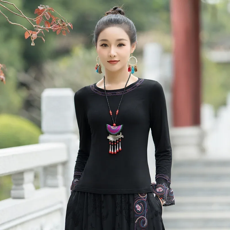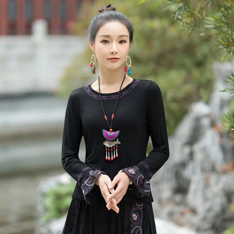 衣都精品- 2023新款民族風繡花顯瘦百搭喇叭袖上衣