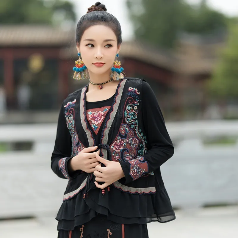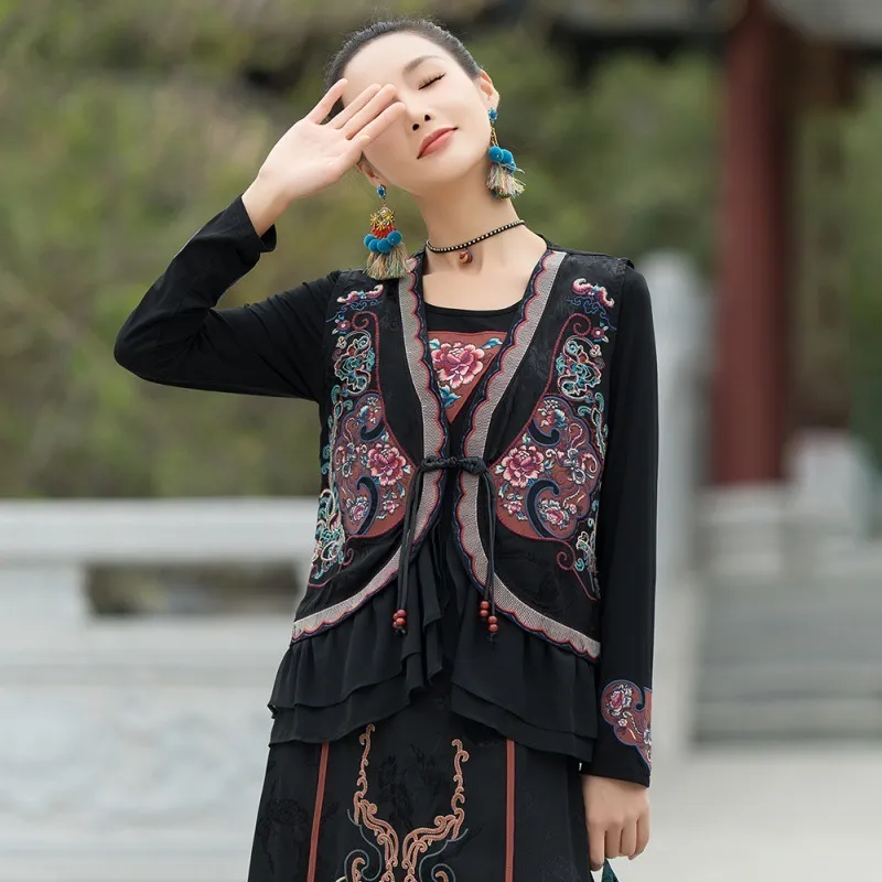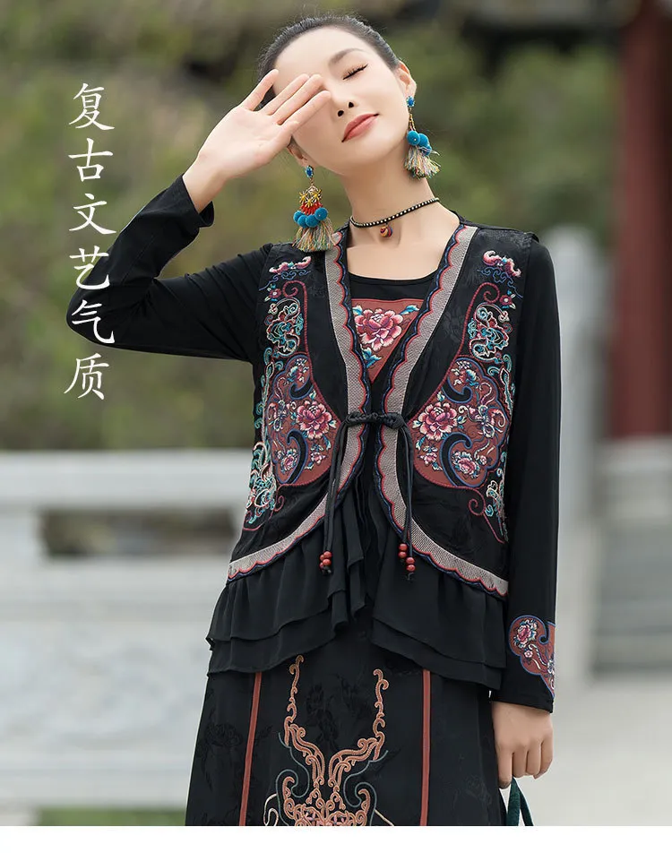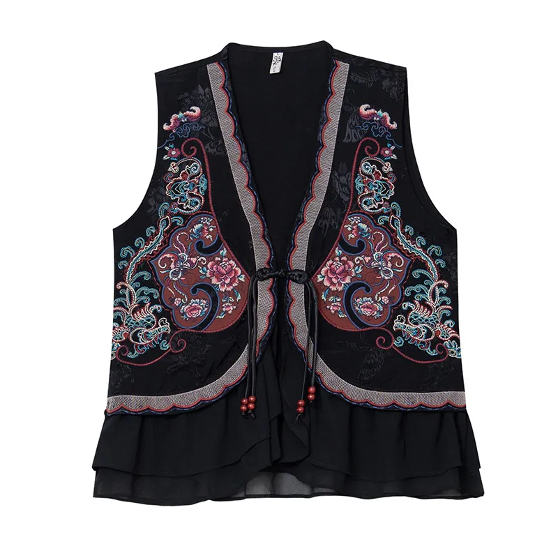 衣都精品- 2023新款民族風重工刺繡盤扣荷葉邊外套