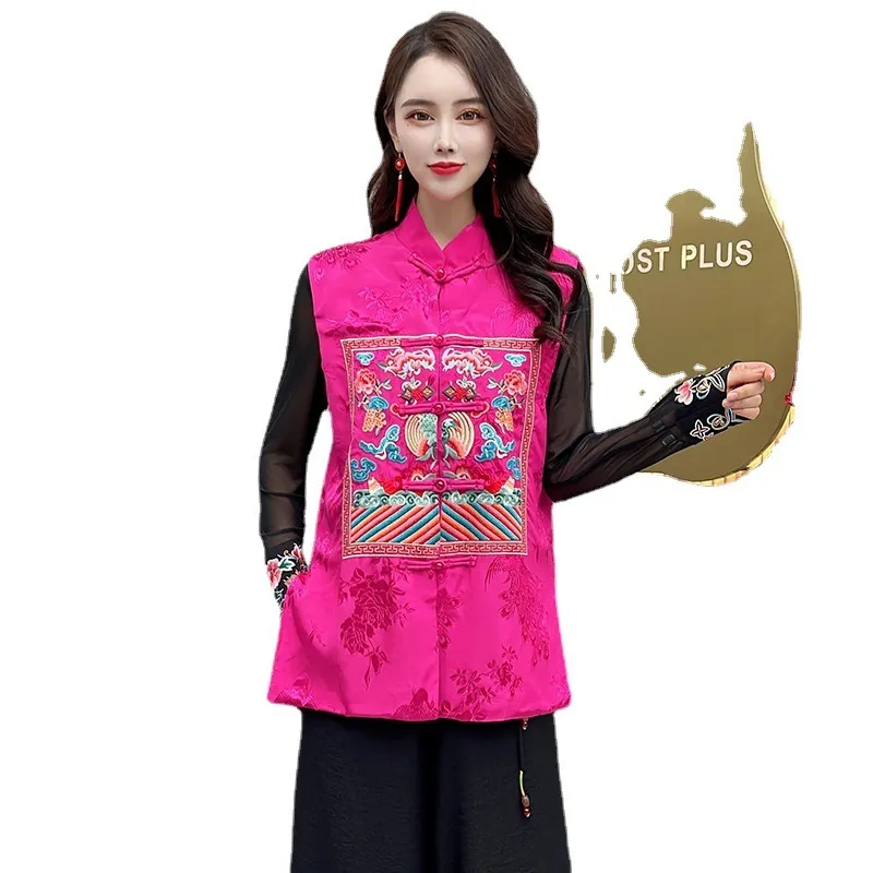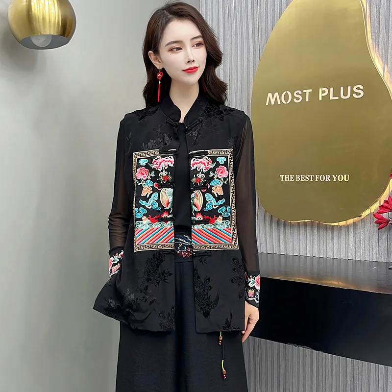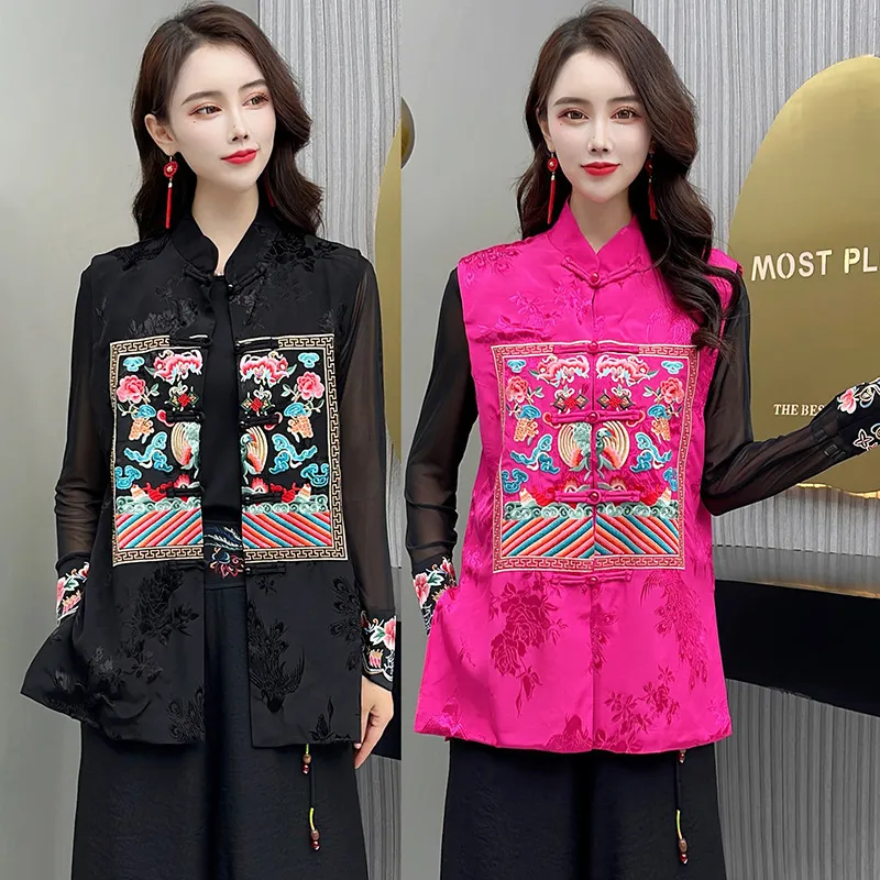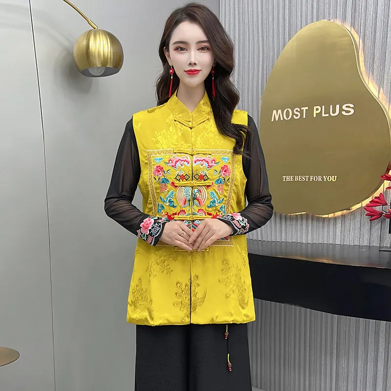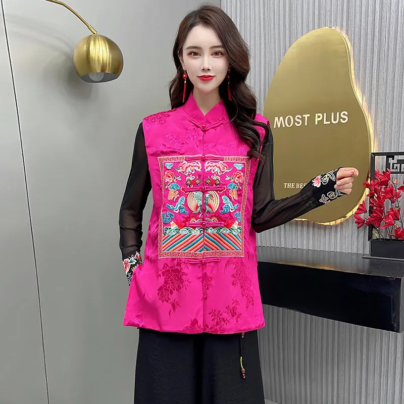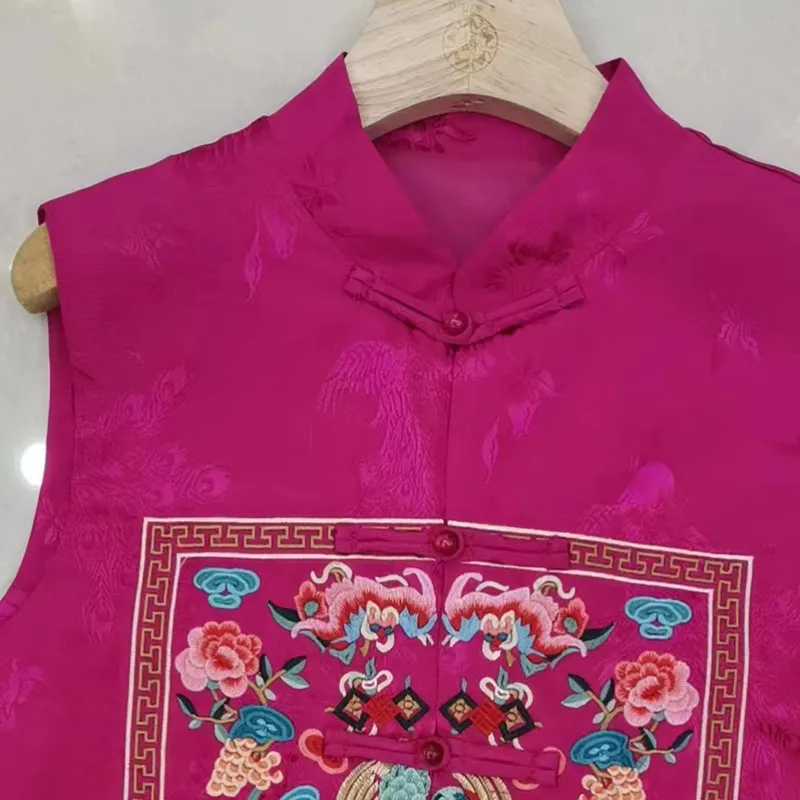 衣都精品- 2023新款民族風盤扣立領短款繡花修身馬甲
