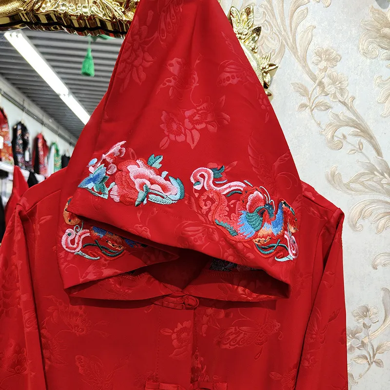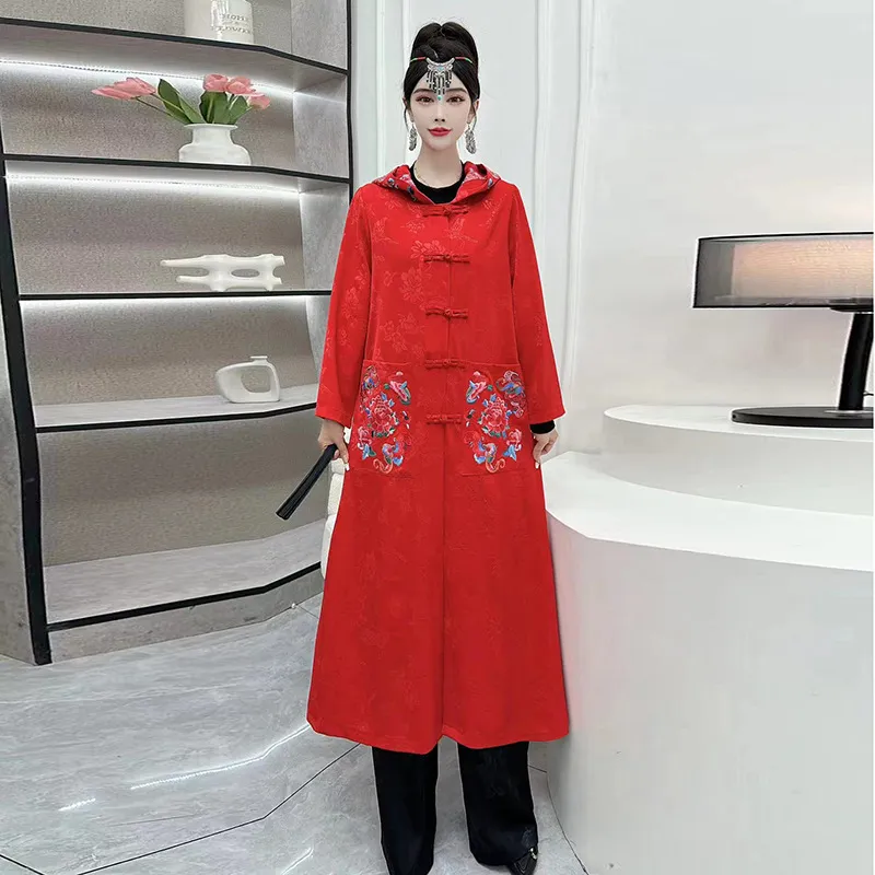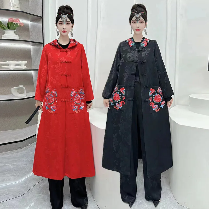 衣都精品- 2023新款民族風長款大碼繡花連帽外套