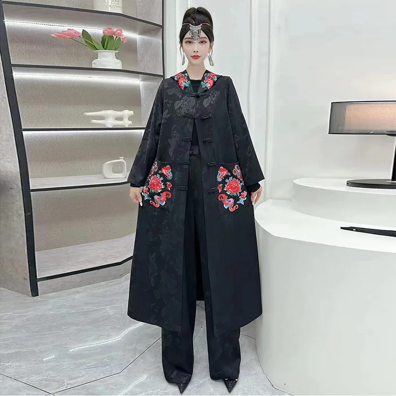 衣都精品- 2023新款民族風大碼盤扣刺繡中長款外套