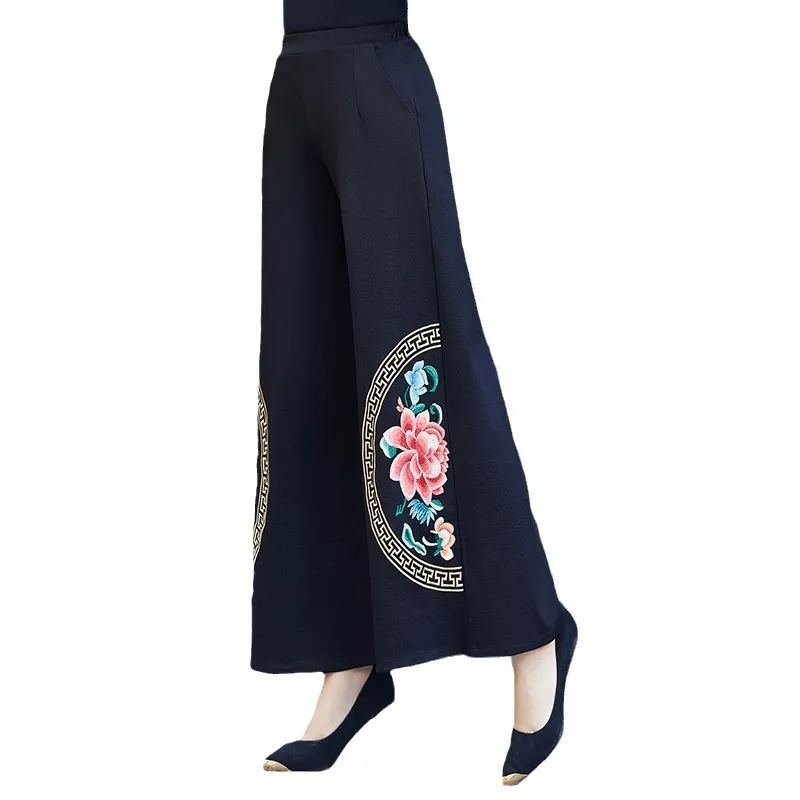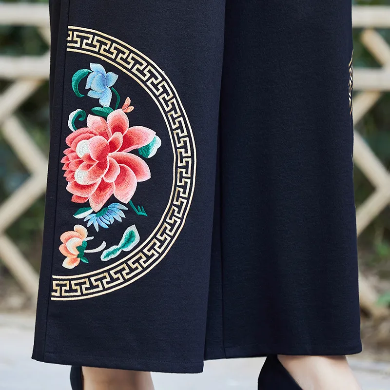 衣都精品- 2023新款民族風大碼鬆緊腰繡花闊腿褲