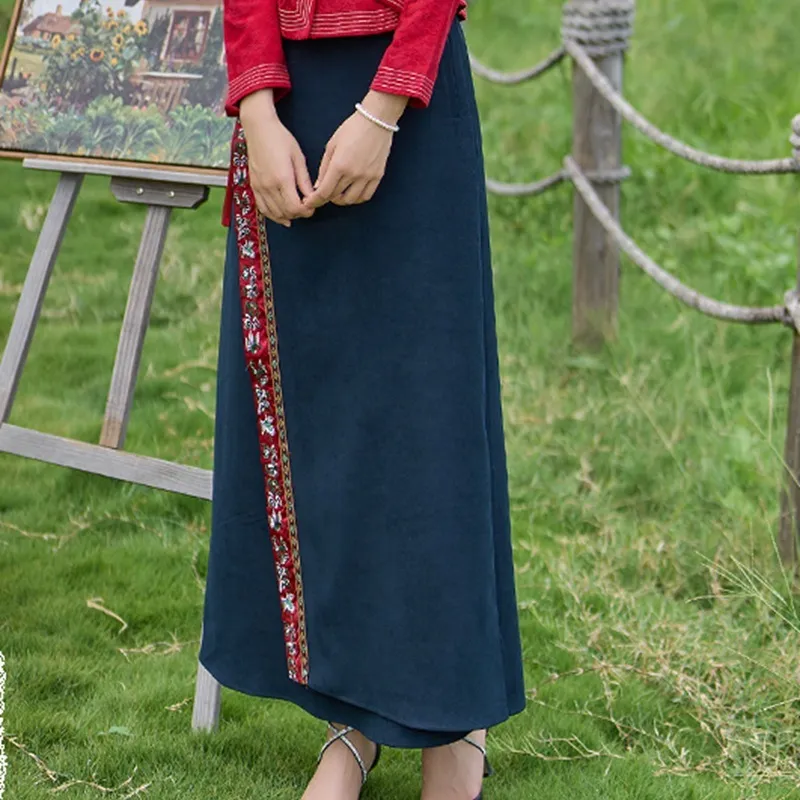 衣都精品- 2023新款民族風刺繡拼接鬆緊腰大碼顯瘦休閒褲