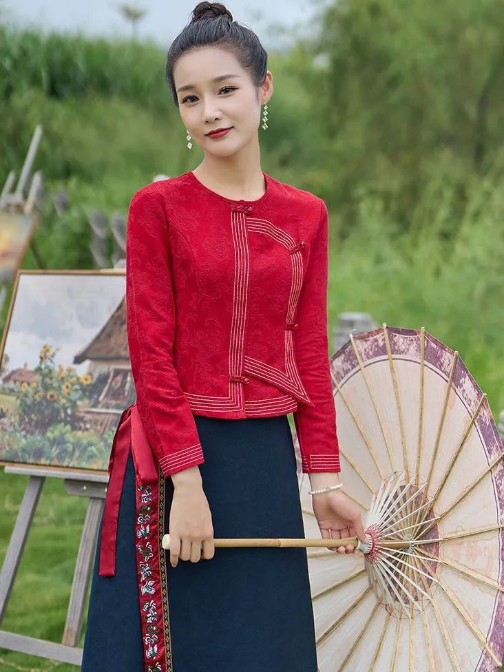 衣都精品- 2023新款中式復古提花改良唐裝上衣