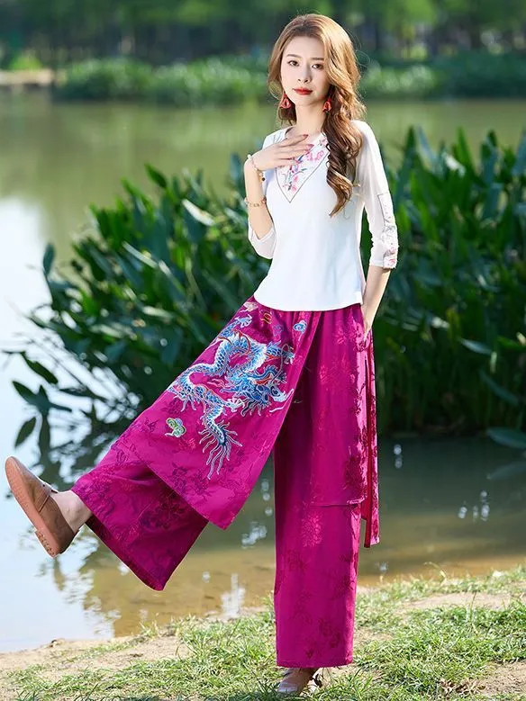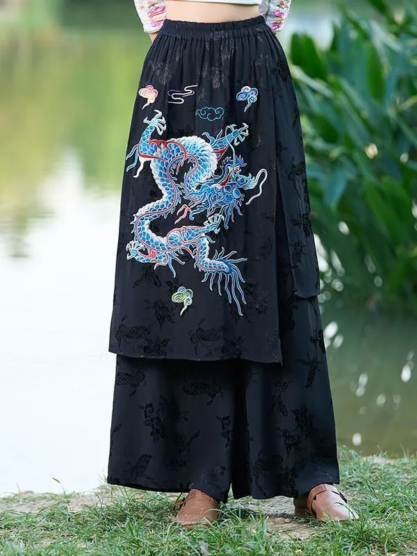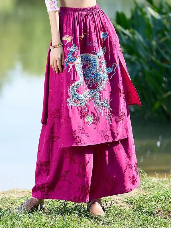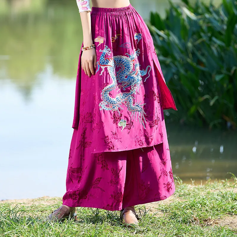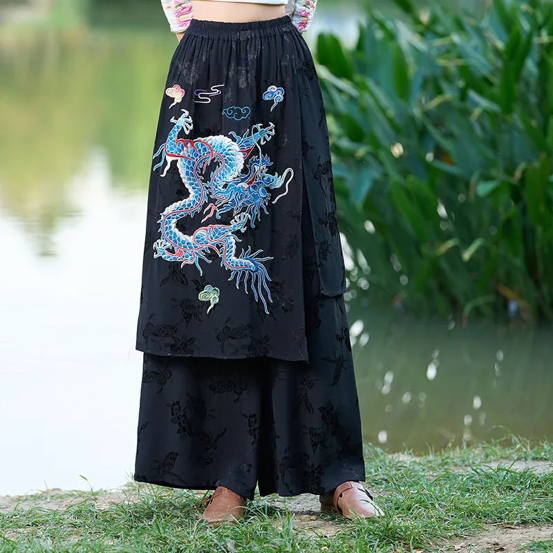 衣都精品- 2023新款民族風重工繡龍提花不規則休閒褲