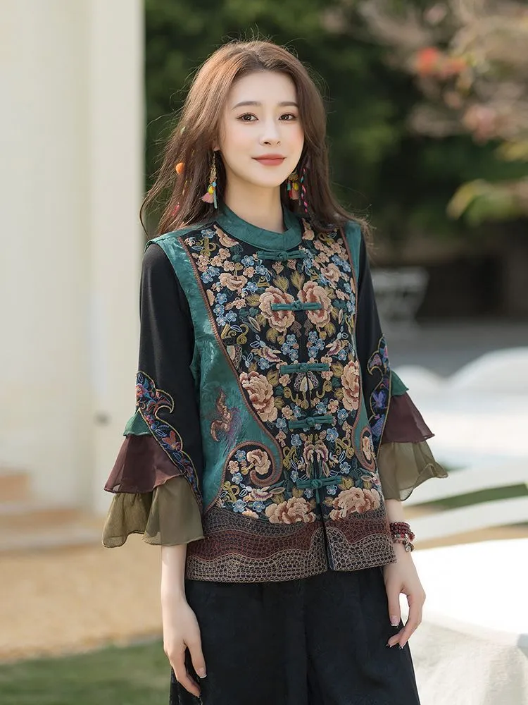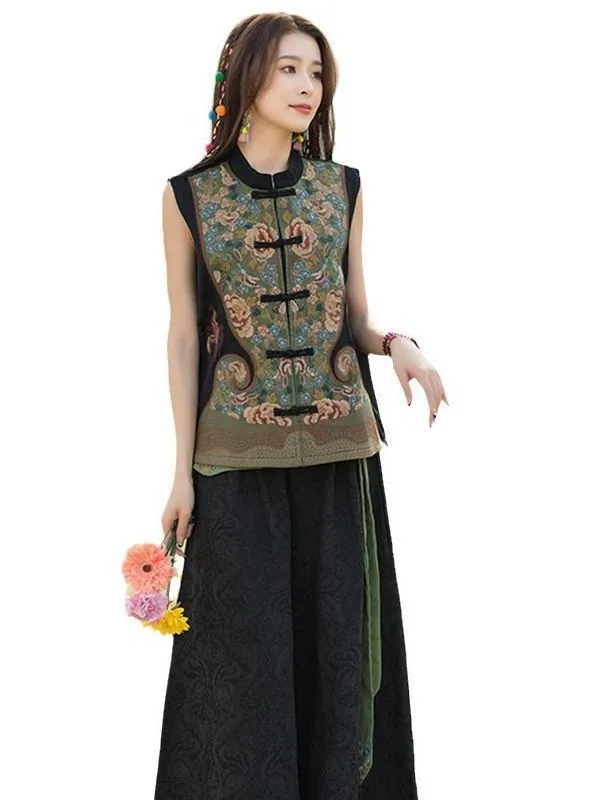 衣都精品- 2023新款民族風刺繡圓領盤扣馬甲外套